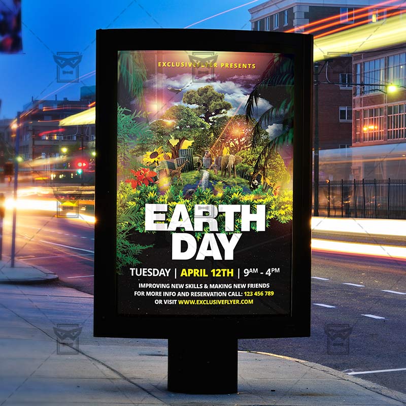 The Earth Day Celebration is the exclusive Photoshop PSD flyer template designed by ExclusiveFlyer to promote your Earth Day Celebration Party. This is a modern, stylish flyer and just be used for a Earth Day Party, Green Night or Eco Party etc. Dear customers! – you can also: Customize any flyers or Hire Us to create any unique product. Also, you can get unlimited access to all our templates. You can buy 1 month membership, 3 or 6 months membership or even 1 year membership plan and login on site, choose a design, click the button DOWNLOAD TEMPLATE and it’s yours. No hassle, no checkout! When you paid the template, you can find it in your personal account and of course you’ve got a message to your e-mail (maybe in spam) with link to download. Also, you can find all templates, which you buy, in your personal account! All of our flyers have a very good quality (300DPI). And it means that you just need to download one of them and make the necessary modifications such as replace the elements or choose the colors and start to invite your guests! You can order from us design of Banner Ad, Bi-Fold Brochure, Tri-Fold Brochure, Business Card, Logo, One-Sided Flyer, Two-sided Flyer or Postcard. All you need is to checkout and write us all information on our e-mail or skype. (order now). There are a lot of free flyer templates, free business card templates on our site! Also there are a lot of categories of flyers such as club flyers, seasonal flyers, sport flyers and also business flyers. You have a great choise on our site, so good luck! Don’t forget to follow our Facebook community, our page on Twitter, on Pinterest and on Tumblr and leave comments, cause we work for you! PSD is set up in 1275×1875 dimension (4″×6″ with 0,25″ bleed). The PSD file is very well organised, with color coded groups and layers named appropriately. Remember, all stock images of models and other people used only for demonstration all charms of the flyer and don’t included in the download!