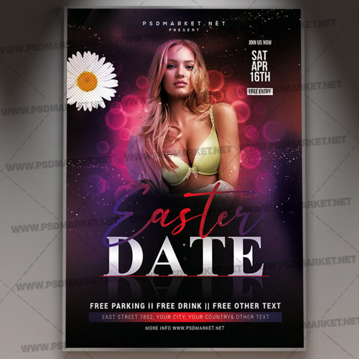 Easter Date Template – Flyer PSD is a simply modern flyer design by PSDmarket Team to be used with Photoshop CS3 and higher. Save your time and use it for business or for your clients! This can be use for Easter Date, Easter Friday, Easter Party Event, Easter Event Party, Easter Event Night Template, Easter Event Night, Easter Night Event, Easter Party Night, Easter Night Party, Easter Saturday Night, Happy Easter, Easter Brunch, Easter Event, Easter Night, Easter Party, Easter, Easter Sale, Easter Day, Happy Easter Day, Happy Easter, Easter Celebration, Easter Event, Easter Egg Hunt or Egg Party and others.