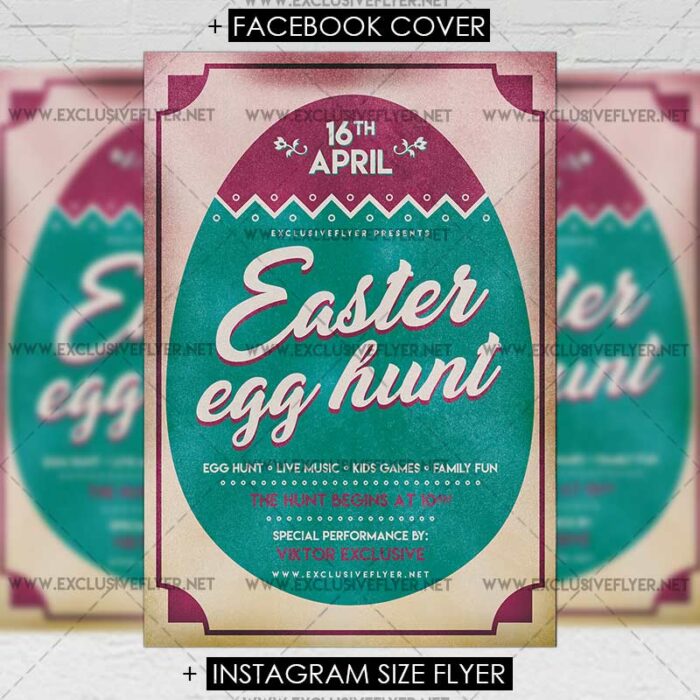 The Easter Egg Hunt is the exclusive Photoshop PSD flyer template designed by ExclusiveFlyer to promote your Easter Egg Hunt. This is a modern, stylish flyer and just be used for a Easter Party, Easter Egg Hunt Party, Kids Egg Hunt, Easter Fest etc. Dear customers! – you can also: Customize any flyers or Hire Us to create any unique product. Also, you can get unlimited access to all our templates. You can buy 1 month membership, 3 or 6 months membership or even 1 year membership plan and login on site, choose a design, click the button DOWNLOAD TEMPLATE and it’s yours. No hassle, no checkout! When you paid the template, you can find it in your personal account and of course you’ve got a message to your e-mail (maybe in spam) with link to download. Also, you can find all templates, which you buy, in your personal account! All of our flyers have a very good quality (300DPI). And it means that you just need to download one of them and make the necessary modifications such as replace the elements or choose the colors and start to invite your guests! You can order from us design of Banner Ad, Bi-Fold Brochure, Tri-Fold Brochure, Business Card, Logo, One-Sided Flyer, Two-sided Flyer or Postcard. All you need is to checkout and write us all information on our e-mail or skype. (order now). There are a lot of free flyer templates, free business card templates on our site! Also there are a lot of categories of flyers such as club flyers, seasonal flyers, sport flyers and also business flyers. You have a great choise on our site, so good luck! Don’t forget to follow our Facebook community, our page on Twitter, on Pinterest and on Tumblr and leave comments, cause we work for you! PSD is set up in 1819×2551 dimension. The PSD file is very well organised, with color coded groups and layers named appropriately. Remember, all stock images of models and other people used only for demonstration all charms of the flyer and don’t included in the download!