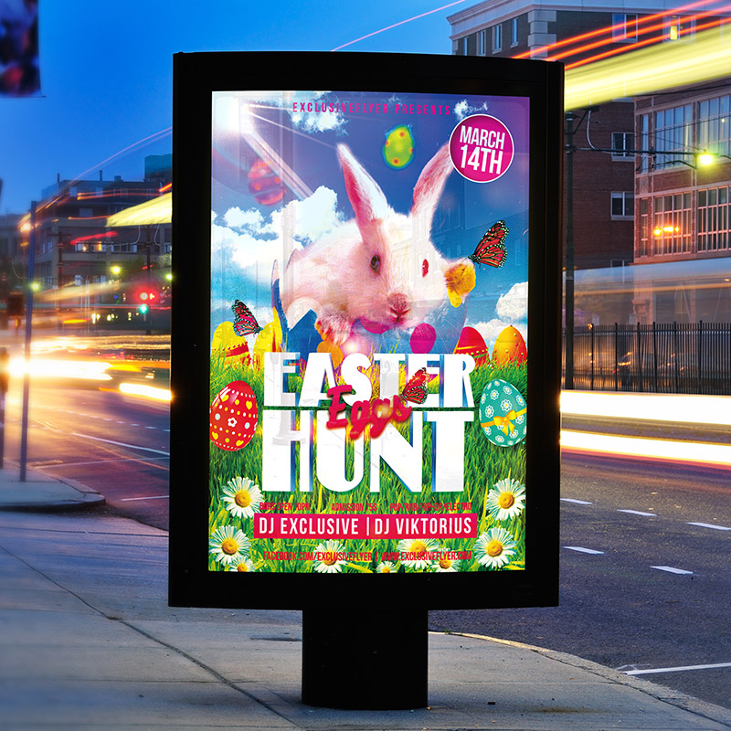 The Easter Eggs Hunt is the exclusive Photoshop PSD flyer template designed by ExclusiveFlyer to promote your Easter Party. This is a modern, stylish, green flyer and just be used for a Easter Party or maybe Spring Night. Dear customers! – you can also: Customize any flyers or Hire Us to create any unique product. Also, you can get unlimited access to all our templates. You can buy 1 month membership, 3 or 6 months membership or even 1 year membership plan and login on site, choose a design, click the button DOWNLOAD TEMPLATE and it’s yours. No hassle, no checkout! When you paid the template, you can find it in your personal account and of course you’ve got a message to your e-mail (maybe in spam) with link to download. Also, you can find all templates, which you buy, in your personal account! All of our flyers have a very good quality (300DPI). And it means that you just need to download one of them and make the necessary modifications such as replace the elements or choose the colors and start to invite your guests! You can order from us design of Banner Ad, Bi-Fold Brochure, Tri-Fold Brochure, Business Card, Logo, One-Sided Flyer, Two-sided Flyer or Postcard. All you need is to checkout and write us all information on our e-mail or skype. (order now). There are a lot of free flyer templates, free business card templates on our site! Also there are a lot of categories of flyers such as club flyers, seasonal flyers, sport flyers and also business flyers. You have a great choise on our site, so good luck! Don’t forget to follow our Facebook community, our page on Twitter, on Pinterest and on Tumblr and leave comments, cause we work for you! PSD is set up in 1275×1875 dimension (4″×6″ with 0,25″ bleed). The PSD file is very well organised, with color coded groups and layers named appropriately. Remember, all stock images of models and other people used only for demonstration all charms of the flyer and don’t included in the download!