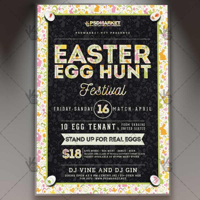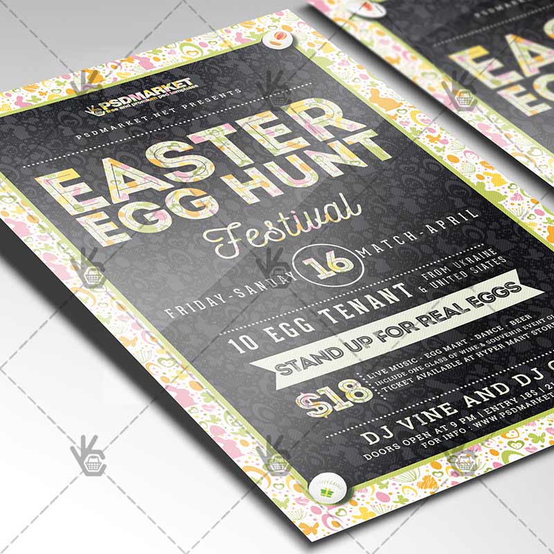 Easter Festival is a simply modern flyer design by PSDmarket Team to be used with Photoshop CS3 and higher. Save your time and use it for business or for your clients! This can be use for Happy Easter, Easter Night , Easter Celebration, Easter Event, Easter Egg Hunt or Egg Party and others.