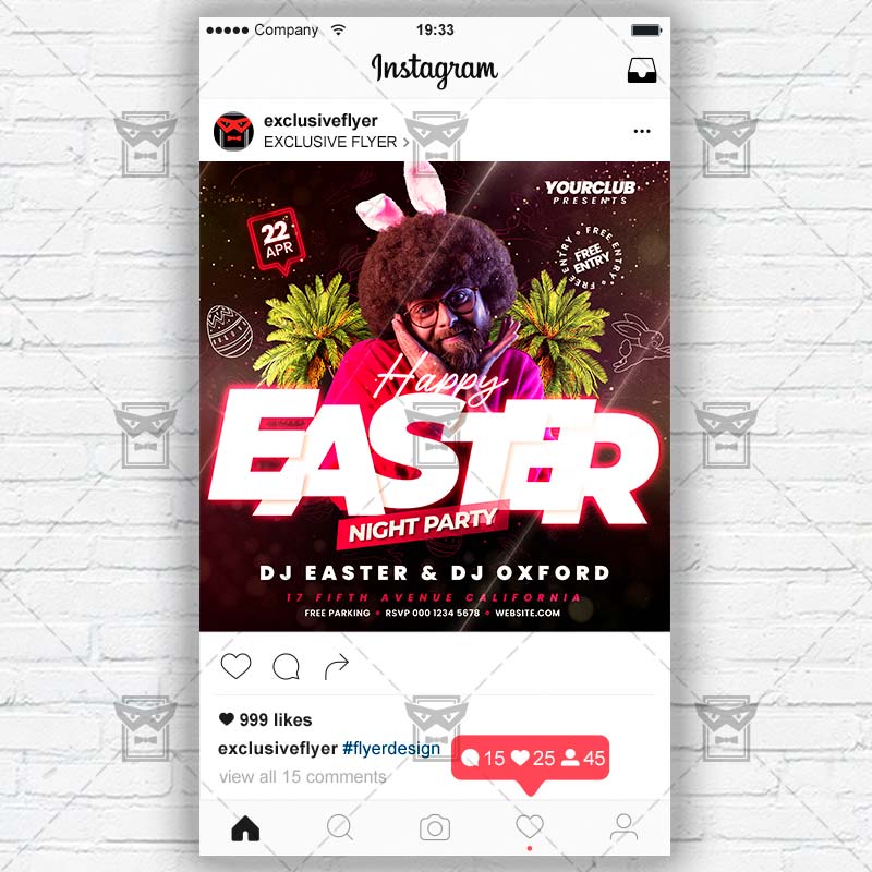 Easter Night Party Template an exclusive PSD flyer template for Adobe Photoshop designed by our best graphic designers to facilitate your task in promoting your business. With our readymade Club flyer in psd format you can invite you customers and guest to your event or to the best Party Club, Girls Night, Party Online, Girls Night Out Party, Live Show Night, Online Show. Online Dj Battle, Online Party On in their lives.