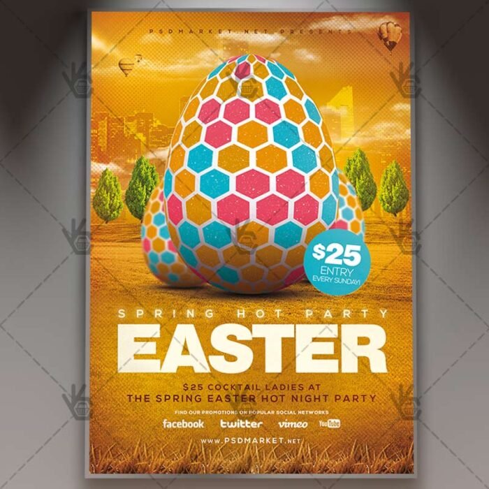 Easter is a simply modern flyer design by PSDmarket Team to be used with Photoshop CS3 and higher. Save your time and use it for business or for your clients! This can be use for Happy Easter, Easter Night , Easter Celebration, Easter Event, Easter Egg Hunt or Egg Party and others.