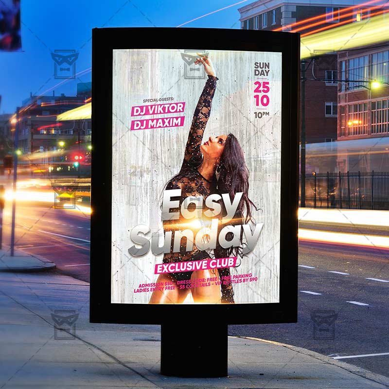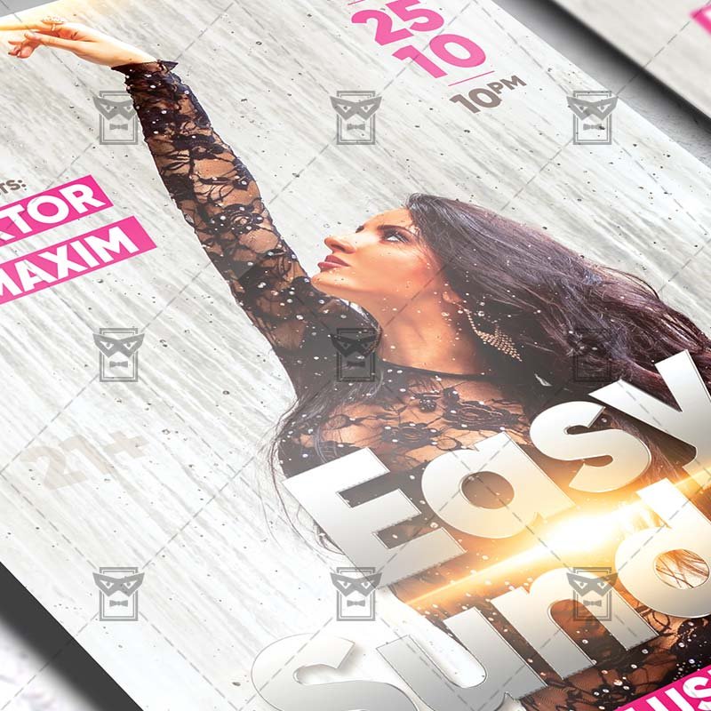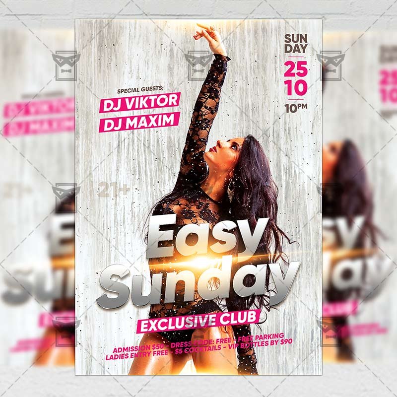 Easy Sunday an exclusive PSD flyer template for Adobe Photoshop designed by our best graphic designers to facilitate your task in promoting your business. With our readymade Club flyer in psd format you can invite you customers and guest to your event or to the best Easy Sunday Party, Sunday Night, Easy Party or Sexy Sunday Night in their lives.