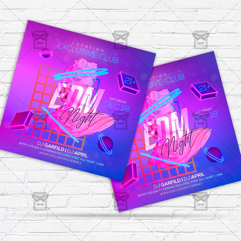 EDM Night Template an exclusive PSD flyer template for Adobe Photoshop designed by our best graphic designers to facilitate your task in promoting your business. With our readymade Club flyer in psd format you can invite you customers and guest to your event or to the best Party Club, Girls Night, Party Online, Girls Night Out Party, Live Show Night, Online Show. Online Dj Battle, Online Party On in their lives.