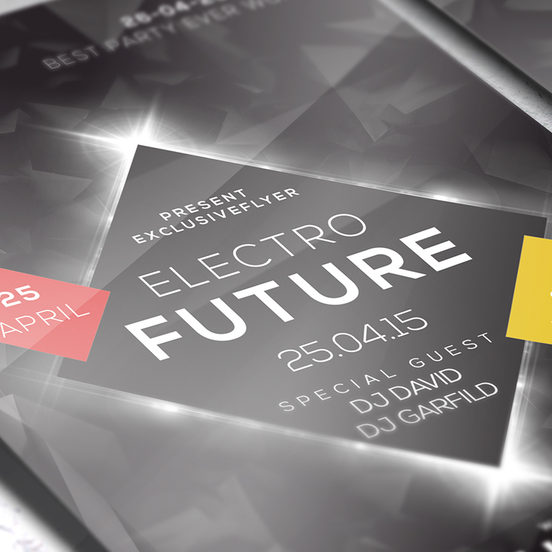 The Electro Future is the exclusive Photoshop PSD flyer template designed by ExclusiveFlyer to promote your Electro Future. This is a modern, stylish, green flyer and just be used for a Future Party or maybe Electro Night. Dear customers! – you can also: Customize any flyers or Hire Us to create any unique product. Also, you can get unlimited access to all our templates. You can buy 1 month membership, 3 or 6 months membership or even 1 year membership plan and login on site, choose a design, click the button DOWNLOAD TEMPLATE and it’s yours. No hassle, no checkout! When you paid the template, you can find it in your personal account and of course you’ve got a message to your e-mail (maybe in spam) with link to download. Also, you can find all templates, which you buy, in your personal account! All of our flyers have a very good quality (300DPI). And it means that you just need to download one of them and make the necessary modifications such as replace the elements or choose the colors and start to invite your guests! You can order from us design of Banner Ad, Bi-Fold Brochure, Tri-Fold Brochure, Business Card, Logo, One-Sided Flyer, Two-sided Flyer or Postcard. All you need is to checkout and write us all information on our e-mail or skype. (order now). There are a lot of free flyer templates, free business card templates on our site! Also there are a lot of categories of flyers such as club flyers, seasonal flyers, sport flyers and also business flyers. You have a great choise on our site, so good luck! Don’t forget to follow our Facebook community, our page on Twitter, on Pinterest and on Tumblr and leave comments, cause we work for you! PSD is set up in 1275×1875 dimension (4″×6″ with 0,25″ bleed). The PSD file is very well organised, with color coded groups and layers named appropriately. Remember, all stock images of models and other people used only for demonstration all charms of the flyer and don’t included in the download!