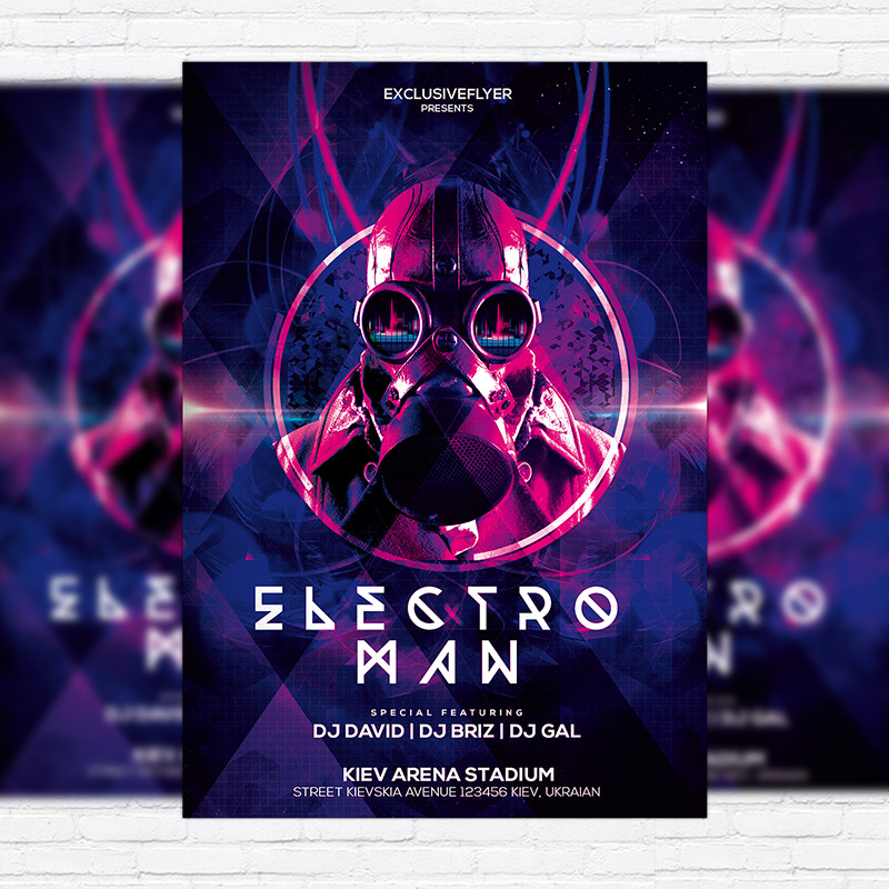 Electro Man Party – Premium PSD Flyer Template + Facebook Cover
