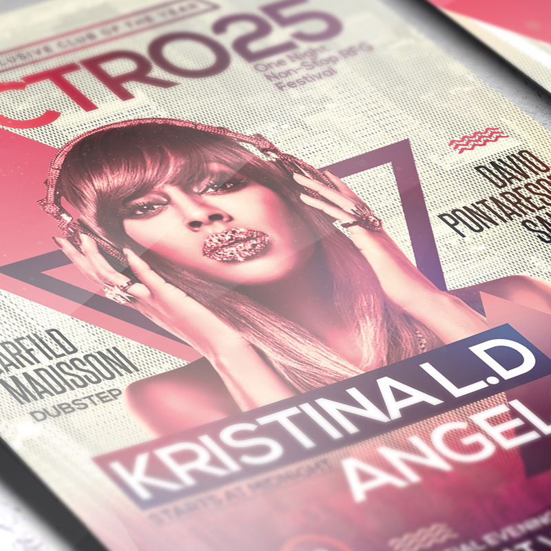 The Electro is the exclusive Photoshop PSD flyer template designed by ExclusiveFlyer to promote your Electro Party. This is a modern, stylish, electro flyer and just be used for a Future Party, Electro Night or Electro Sound Revolution. Dear customers! – you can also: Customize any flyers or Hire Us to create any unique product. Also, you can get unlimited access to all our templates. You can buy 1 month membership, 3 or 6 months membership or even 1 year membership plan and login on site, choose a design, click the button DOWNLOAD TEMPLATE and it’s yours. No hassle, no checkout! When you paid the template, you can find it in your personal account and of course you’ve got a message to your e-mail (maybe in spam) with link to download. Also, you can find all templates, which you buy, in your personal account! All of our flyers have a very good quality (300DPI). And it means that you just need to download one of them and make the necessary modifications such as replace the elements or choose the colors and start to invite your guests! You can order from us design of Banner Ad, Bi-Fold Brochure, Tri-Fold Brochure, Business Card, Logo, One-Sided Flyer, Two-sided Flyer or Postcard. All you need is to checkout and write us all information on our e-mail or skype. (order now). There are a lot of free flyer templates, free business card templates on our site! Also there are a lot of categories of flyers such as club flyers, seasonal flyers, sport flyers and also business flyers. You have a great choise on our site, so good luck! Don’t forget to follow our Facebook community, our page on Twitter, on Pinterest and on Tumblr and leave comments, cause we work for you! PSD is set up in 1275×1875 dimension (4″×6″ with 0,25″ bleed). The PSD file is very well organised, with color coded groups and layers named appropriately. Remember, all stock images of models and other people used only for demonstration all charms of the flyer and don’t included in the download!
