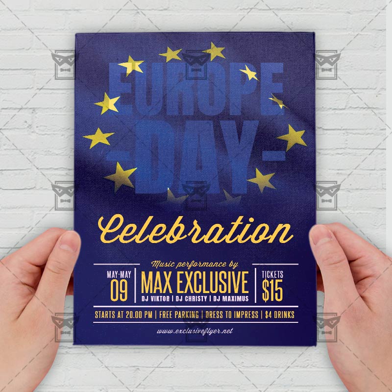 Europe Day Celebration PSD Template Template an exclusive PSD flyer template for Adobe Photoshop designed by our best graphic designers to facilitate your task in promoting your business. This psd poster/flyer is the best choice for Europe Day Show, Europe Day Celebration, Europe Day Party, Europe Day Night Party, Ukraine Win Party. With our readymade Europe Day Celebration PSD Template flyer in psd format you can invite you customers and guest to your event with a minimum of efforts and time.