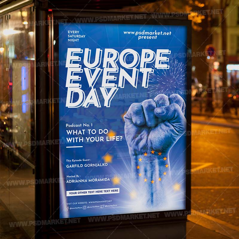 Europe Event Day PSD Template Flyer is a simply modern flyer design by PSDmarket Team to be used with Photoshop CS3 and higher. Save your time and use it for business or for your clients! This can be use for Europe Event Day, Europe Day Party, Europe Day Event, Europe Day, Europe Day Party, Europe Day 2022, Europe Day Night, Europe Day Festival, Europe Event and others.