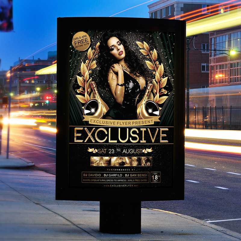 The Exclusive Party is the exclusive Photoshop PSD flyer template designed by ExclusiveFlyer to promote your Exclusive Party. This is a modern, stylish, black flyer and just be used for a Private Party or Gala Private Night or Birthday Bash etc. Dear customers! – you can also: Customize any flyers or Hire Us to create any unique product. Also, you can get unlimited access to all our templates. You can buy 1 month membership, 3 or 6 months membership or even 1 year membership plan and login on site, choose a design, click the button DOWNLOAD TEMPLATE and it’s yours. No hassle, no checkout! When you paid the template, you can find it in your personal account and of course you’ve got a message to your e-mail (maybe in spam) with link to download. Also, you can find all templates, which you buy, in your personal account! All of our flyers have a very good quality (300DPI). And it means that you just need to download one of them and make the necessary modifications such as replace the elements or choose the colors and start to invite your guests! You can order from us design of Banner Ad, Bi-Fold Brochure, Tri-Fold Brochure, Business Card, Logo, One-Sided Flyer, Two-sided Flyer or Postcard. All you need is to checkout and write us all information on our e-mail or skype. (order now). There are a lot of free flyer templates, free business card templates on our site! Also there are a lot of categories of flyers such as club flyers, seasonal flyers, sport flyers and also business flyers. You have a great choise on our site, so good luck! Don’t forget to follow our Facebook community, our page on Twitter, on Pinterest and on Tumblr and leave comments, cause we work for you! PSD is set up in 1275×1875 dimension (4″×6″ with 0,25″ bleed). The PSD file is very well organised, with color coded groups and layers named appropriately. Remember, all stock images of models and other people used only for demonstration all charms of the flyer and don’t included in the download!