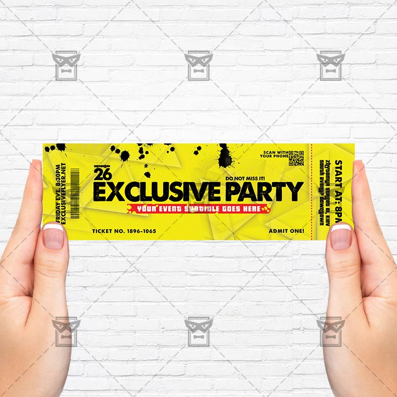 The Exclusive Party Ticket is the exclusive Photoshop PSD ticket template designed by ExclusiveFlyer to promote your Exclusive Party. This is a modern, stylish ticket and just be used for a Exclusive Event etc. Dear customers! – you can also: Customize any flyers or Hire Us to create any unique product. Also, you can get unlimited access to all our templates. You can buy 1 month membership, 3 or 6 months membership or even 1 year membership plan and login on site, choose a design, click the button DOWNLOAD TEMPLATE and it’s yours. No hassle, no checkout! When you paid the template, you can find it in your personal account and of course you’ve got a message to your e-mail (maybe in spam) with link to download. Also, you can find all templates, which you buy, in your personal account! All of our flyers have a very good quality (300DPI). And it means that you just need to download one of them and make the necessary modifications such as replace the elements or choose the colors and start to invite your guests! You can order from us design of Banner Ad, Bi-Fold Brochure, Tri-Fold Brochure, Business Card, Logo, One-Sided Flyer, Two-sided Flyer or Postcard. All you need is to checkout and write us all information on our e-mail or skype. (order now). There are a lot of free flyer templates, free business card templates on our site! Also there are a lot of categories of flyers such as club flyers, seasonal flyers, sport flyers and also business flyers. You have a great choise on our site, so good luck! Don’t forget to follow our Facebook community, our page on Twitter, on Pinterest and on Tumblr and leave comments, cause we work for you! PSD is set up in 2175×675 dimension (7” x 2” with 0,25” bleed). The PSD file is very well organised, with color coded groups and layers named appropriately. Remember, all stock images of models and other people used only for demonstration all charms of the flyer and don’t included in the download!
