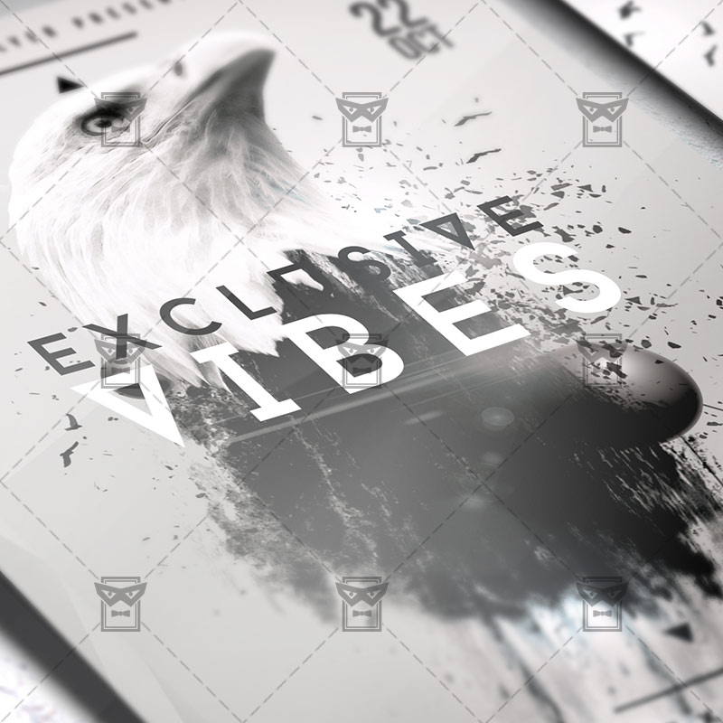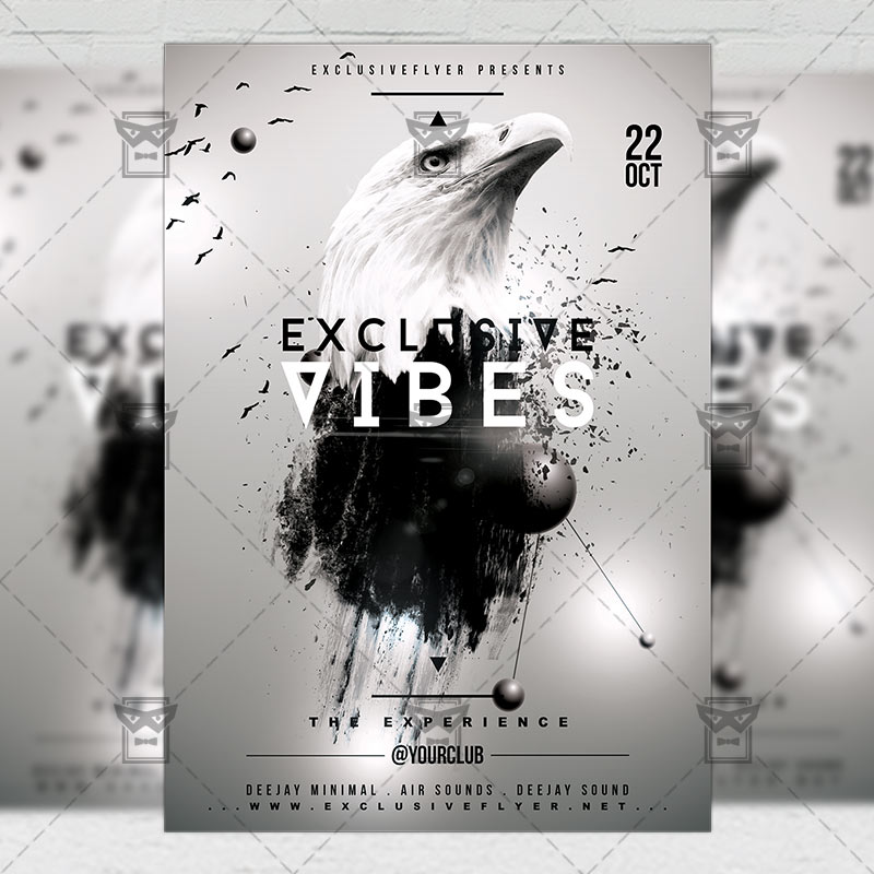 The Exclusive Vibes is the exclusive Photoshop PSD flyer template designed by ExclusiveFlyer to promote your Exclusive Vibes. This is a modern, stylish flyer and just be used for Modern Party, Minimal Night, Electro Party Night etc.