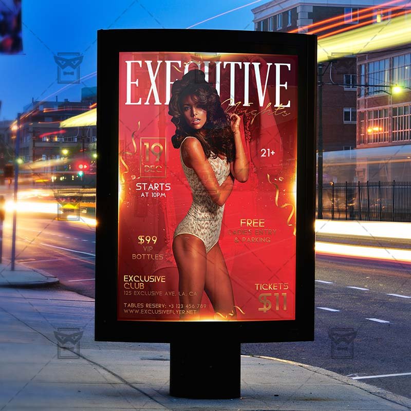 Executive Night an exclusive PSD flyer template for Adobe Photoshop designed by our best graphic designers to facilitate your task in promoting your business. With our readymade Club flyer in psd format you can invite you customers and guest to your event or to the best Executive Party Night, Executive Fridays, Executive Club Party or Club Night Party in their lives.