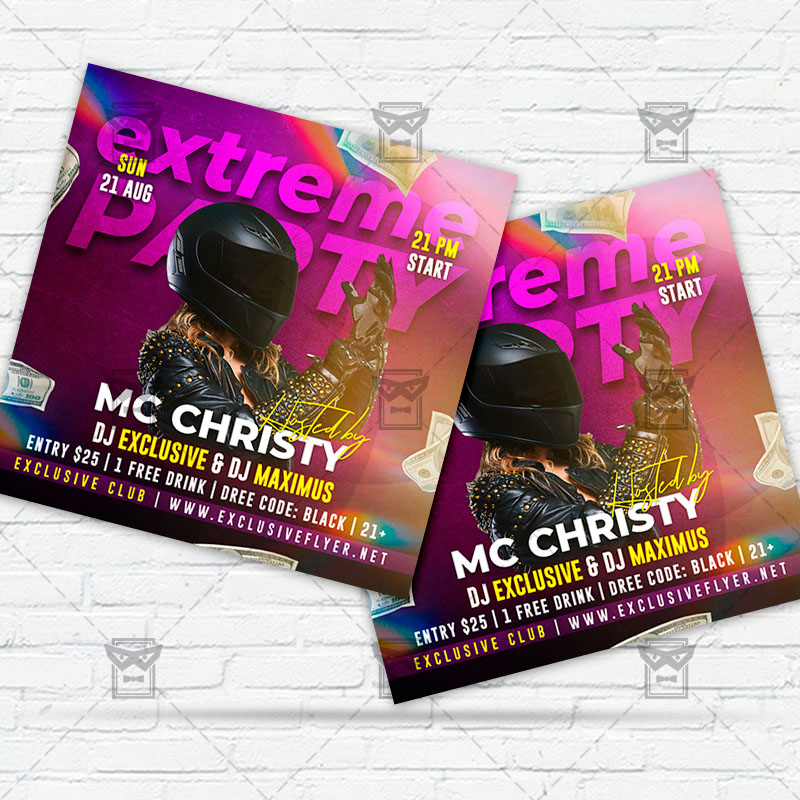 Extreme Party Template an exclusive PSD flyer template for Adobe Photoshop designed by our best graphic designers to facilitate your task in promoting your business. With our readymade Club flyer in psd format you can invite you customers and guest to your event or to the best Extreme Night Party, Extreme Vibes, Extreme Event, Extreme Show in their lives.