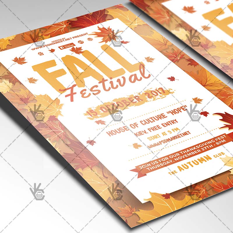 Fall Festival is a simply modern flyer design by PSDmarket Team to be used with Photoshop CS3 and higher. Save your time and use it for business or for your clients! This can be use for Fall Day Party, Fall Fest, Fall Party, Fall Night, Autumn Party or Autumn Festival and others.