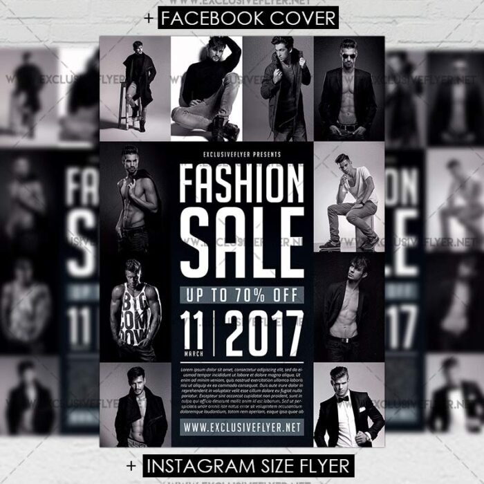 The Fashion Sale is the exclusive Photoshop PSD flyer template designed by ExclusiveFlyer to promote your Fashion Sale. This is a modern, stylish flyer and just be used for a Super Sale, Black Friday Sale, Fashion Super Sale etc. Dear customers! – you can also: Customize any flyers or Hire Us to create any unique product. Also, you can get unlimited access to all our templates. You can buy 1 month membership, 3 or 6 months membership or even 1 year membership plan and login on site, choose a design, click the button DOWNLOAD TEMPLATE and it’s yours. No hassle, no checkout! When you paid the template, you can find it in your personal account and of course you’ve got a message to your e-mail (maybe in spam) with link to download. Also, you can find all templates, which you buy, in your personal account! All of our flyers have a very good quality (300DPI). And it means that you just need to download one of them and make the necessary modifications such as replace the elements or choose the colors and start to invite your guests! You can order from us design of Banner Ad, Bi-Fold Brochure, Tri-Fold Brochure, Business Card, Logo, One-Sided Flyer, Two-sided Flyer or Postcard. All you need is to checkout and write us all information on our e-mail or skype. (order now). There are a lot of free flyer templates, free business card templates on our site! Also there are a lot of categories of flyers such as club flyers, seasonal flyers, sport flyers and also business flyers. You have a great choise on our site, so good luck! Don’t forget to follow our Facebook community, our page on Twitter, on Pinterest and on Tumblr and leave comments, cause we work for you! PSD is set up in 1819×2551 dimension. The PSD file is very well organised, with color coded groups and layers named appropriately. Remember, all stock images of models and other people used only for demonstration all charms of the flyer and don’t included in the download!