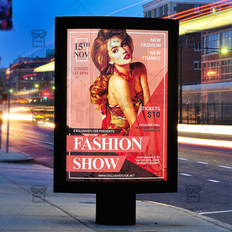 The Fashion Show is the exclusive Photoshop PSD flyer template designed by ExclusiveFlyer to promote your Fashion Show. This is a modern, stylish flyer and just be used for a Models Night, Fashion Sale etc. Dear customers! – you can also: Customize any flyers or Hire Us to create any unique product. Also, you can get unlimited access to all our templates. You can buy 1 month membership, 3 or 6 months membership or even 1 year membership plan and login on site, choose a design, click the button DOWNLOAD TEMPLATE and it’s yours. No hassle, no checkout! When you paid the template, you can find it in your personal account and of course you’ve got a message to your e-mail (maybe in spam) with link to download. Also, you can find all templates, which you buy, in your personal account! All of our flyers have a very good quality (300DPI). And it means that you just need to download one of them and make the necessary modifications such as replace the elements or choose the colors and start to invite your guests! You can order from us design of Banner Ad, Bi-Fold Brochure, Tri-Fold Brochure, Business Card, Logo, One-Sided Flyer, Two-sided Flyer or Postcard. All you need is to checkout and write us all information on our e-mail or skype. (order now). There are a lot of free flyer templates, free business card templates on our site! Also there are a lot of categories of flyers such as club flyers, seasonal flyers, sport flyers and also business flyers. You have a great choise on our site, so good luck! Don’t forget to follow our Facebook community, our page on Twitter, on Pinterest and on Tumblr and leave comments, cause we work for you! PSD is set up in 1275×1875 dimension (4” x 6” with 0,25” bleed). The PSD file is very well organised, with color coded groups and layers named appropriately. Remember, all stock images of models and other people used only for demonstration all charms of the flyer and don’t included in the download!