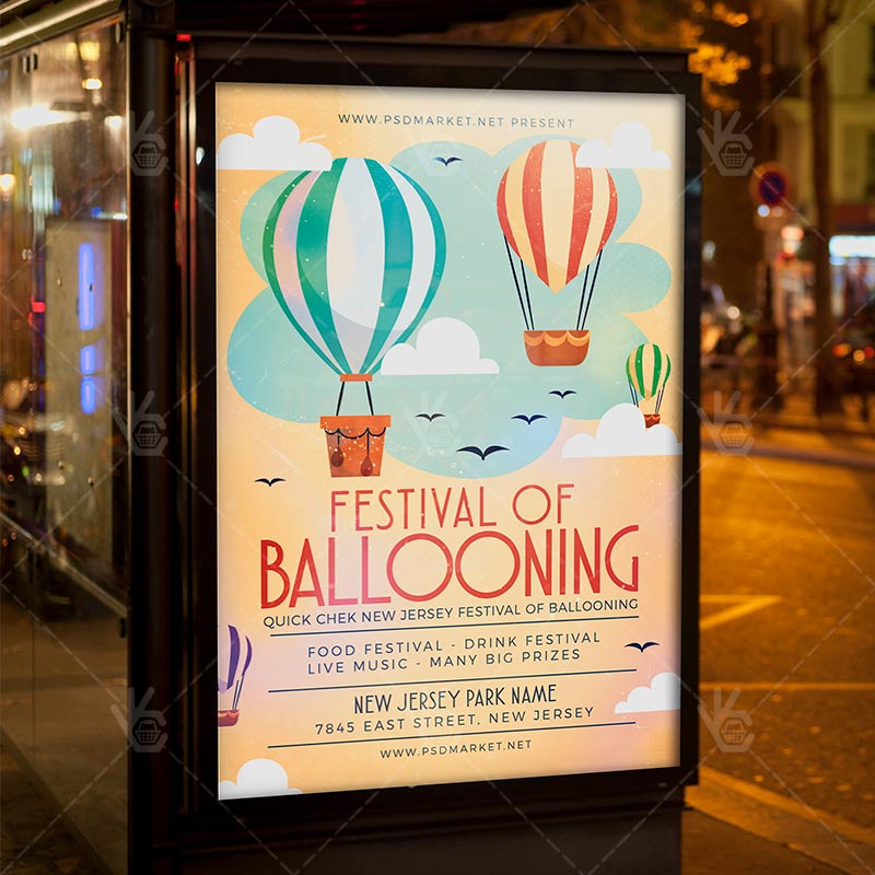 Festival of Ballooning Flyer is a simply modern flyer design by PSDmarket Team to be used with Photoshop CS3 and higher. Save your time and use it for business or for your clients! This can be use for Festival of Ballooning, Festival of Balloons, Ballooning Fest, Balloons Week, Balloons Festival, Community Balloons Festival, Balloons Market, Balloons Day, Friday Balloons and others.