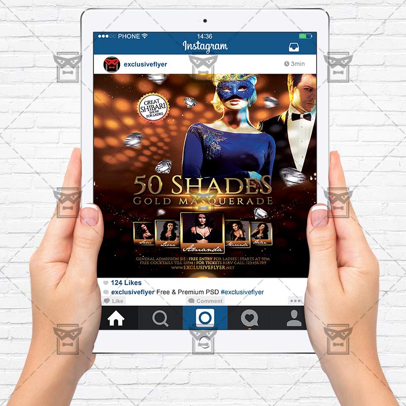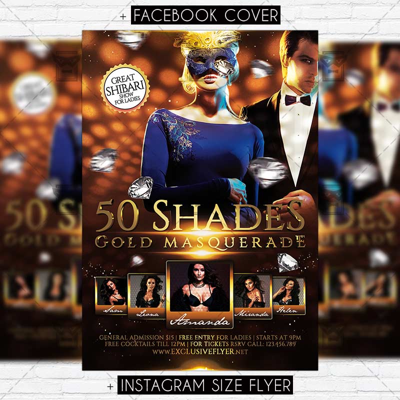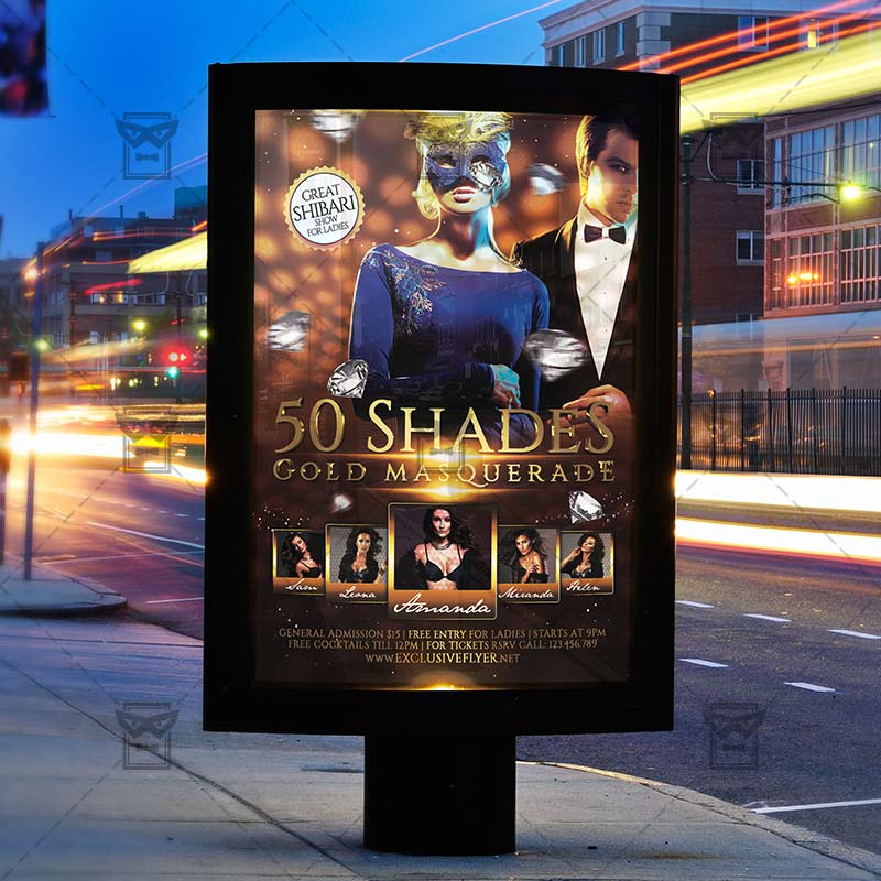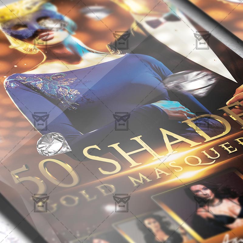 The Fifty Shades is the exclusive Photoshop PSD flyer template designed by ExclusiveFlyer to promote your Fifty Shades. This is a modern, stylish flyer and just be used for a Fifty Shades of Grey Live Show, Fifty Shades of Grey Night etc. Dear customers! – you can also: Customize any flyers or Hire Us to create any unique product. Also, you can get unlimited access to all our templates. You can buy 1 month membership, 3 or 6 months membership or even 1 year membership plan and login on site, choose a design, click the button DOWNLOAD TEMPLATE and it’s yours. No hassle, no checkout! When you paid the template, you can find it in your personal account and of course you’ve got a message to your e-mail (maybe in spam) with link to download. Also, you can find all templates, which you buy, in your personal account! All of our flyers have a very good quality (300DPI). And it means that you just need to download one of them and make the necessary modifications such as replace the elements or choose the colors and start to invite your guests! You can order from us design of Banner Ad, Bi-Fold Brochure, Tri-Fold Brochure, Business Card, Logo, One-Sided Flyer, Two-sided Flyer or Postcard. All you need is to checkout and write us all information on our e-mail or skype. (order now). There are a lot of free flyer templates, free business card templates on our site! Also there are a lot of categories of flyers such as club flyers, seasonal flyers, sport flyers and also business flyers. You have a great choise on our site, so good luck! Don’t forget to follow our Facebook community, our page on Twitter, on Pinterest and on Tumblr and leave comments, cause we work for you! PSD is set up in 1275×1875 dimension (4” x 6” with 0,25” bleed). The PSD file is very well organised, with color coded groups and layers named appropriately. Remember, all stock images of models and other people used only for demonstration all charms of the flyer and don’t included in the download!