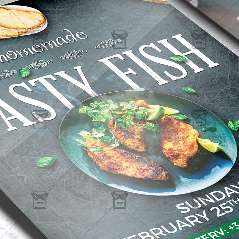 Fish Restaurant is an exclusive PSD flyer template for Adobe Photoshop designed by our best graphic designers to facilitate your task in promoting your business. With our readymade Food flyer in psd format you can invite you customers and guest to your event or to the best Fish Restaurant, Fish and Chips Festival or Seafood Restaurant in their lives.