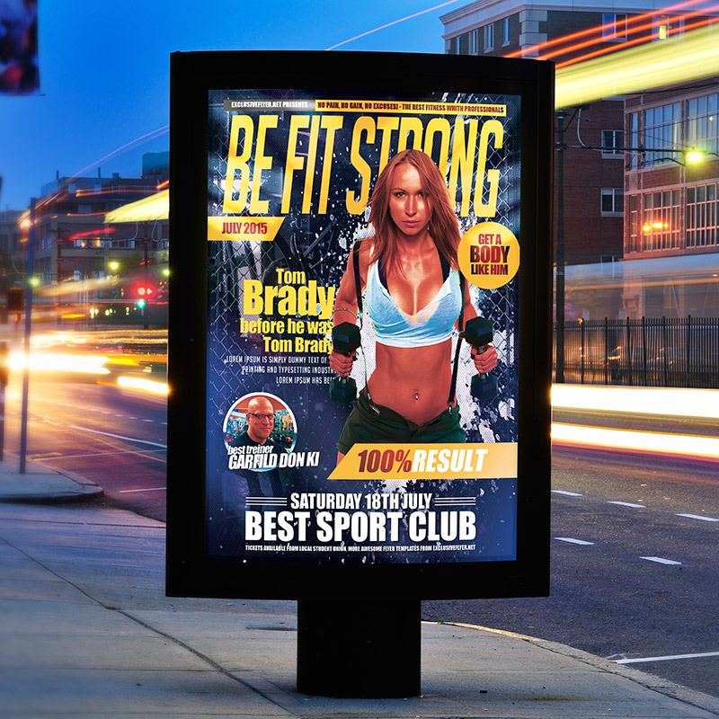 The Fitness is the exclusive Photoshop PSD flyer/poster template designed by ExclusiveFlyer to promote your Fitness Flyer. This is a modern, stylish, fresh flyer and just be used for a Health Flyer or Gym Flyer. Dear customers! – you can also: Customize any flyers or Hire Us to create any unique product. Also, you can get unlimited access to all our templates. You can buy 1 month membership, 3 or 6 months membership or even 1 year membership plan and login on site, choose a design, click the button DOWNLOAD TEMPLATE and it’s yours. No hassle, no checkout! When you paid the template, you can find it in your personal account and of course you’ve got a message to your e-mail (maybe in spam) with link to download. Also, you can find all templates, which you buy, in your personal account! All of our flyers have a very good quality (300DPI). And it means that you just need to download one of them and make the necessary modifications such as replace the elements or choose the colors and start to invite your guests! You can order from us design of Banner Ad, Bi-Fold Brochure, Tri-Fold Brochure, Business Card, Logo, One-Sided Flyer, Two-sided Flyer or Postcard. All you need is to checkout and write us all information on our e-mail or skype. (order now). There are a lot of free flyer templates, free business card templates on our site! Also there are a lot of categories of flyers such as club flyers, seasonal flyers, sport flyers and also business flyers. You have a great choise on our site, so good luck! Don’t forget to follow our Facebook community, our page on Twitter, on Pinterest and on Tumblr and leave comments, cause we work for you! PSD is set up in 1275×1875 dimension (4″×6″ with 0,25″ bleed). The PSD file is very well organised, with color coded groups and layers named appropriately. Remember, all stock images of models and other people used only for demonstration all charms of the flyer and don’t included in the download!