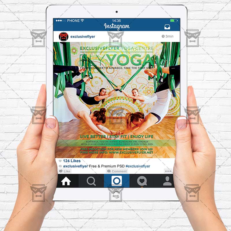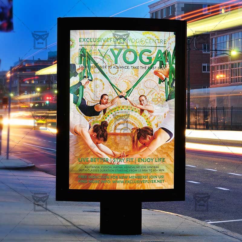 The Fly Yoga is the exclusive Photoshop PSD flyer template designed by ExclusiveFlyer to promote your Fly Yoga. This is a modern, stylish flyer and just be used for a Yoga Classes, Aero Yoga Cources, Yoga Day etc. Dear customers! – you can also: Customize any flyers or Hire Us to create any unique product. Also, you can get unlimited access to all our templates. You can buy 1 month membership, 3 or 6 months membership or even 1 year membership plan and login on site, choose a design, click the button DOWNLOAD TEMPLATE and it’s yours. No hassle, no checkout! When you paid the template, you can find it in your personal account and of course you’ve got a message to your e-mail (maybe in spam) with link to download. Also, you can find all templates, which you buy, in your personal account! All of our flyers have a very good quality (300DPI). And it means that you just need to download one of them and make the necessary modifications such as replace the elements or choose the colors and start to invite your guests! You can order from us design of Banner Ad, Bi-Fold Brochure, Tri-Fold Brochure, Business Card, Logo, One-Sided Flyer, Two-sided Flyer or Postcard. All you need is to checkout and write us all information on our e-mail or skype. (order now). There are a lot of free flyer templates, free business card templates on our site! Also there are a lot of categories of flyers such as club flyers, seasonal flyers, sport flyers and also business flyers. You have a great choise on our site, so good luck! Don’t forget to follow our Facebook community, our page on Twitter, on Pinterest and on Tumblr and leave comments, cause we work for you! PSD is set up in 1275×1875 dimension (4” x 6” with 0,25” bleed). The PSD file is very well organised, with color coded groups and layers named appropriately. Remember, all stock images of models and other people used only for demonstration all charms of the flyer and don’t included in the download!