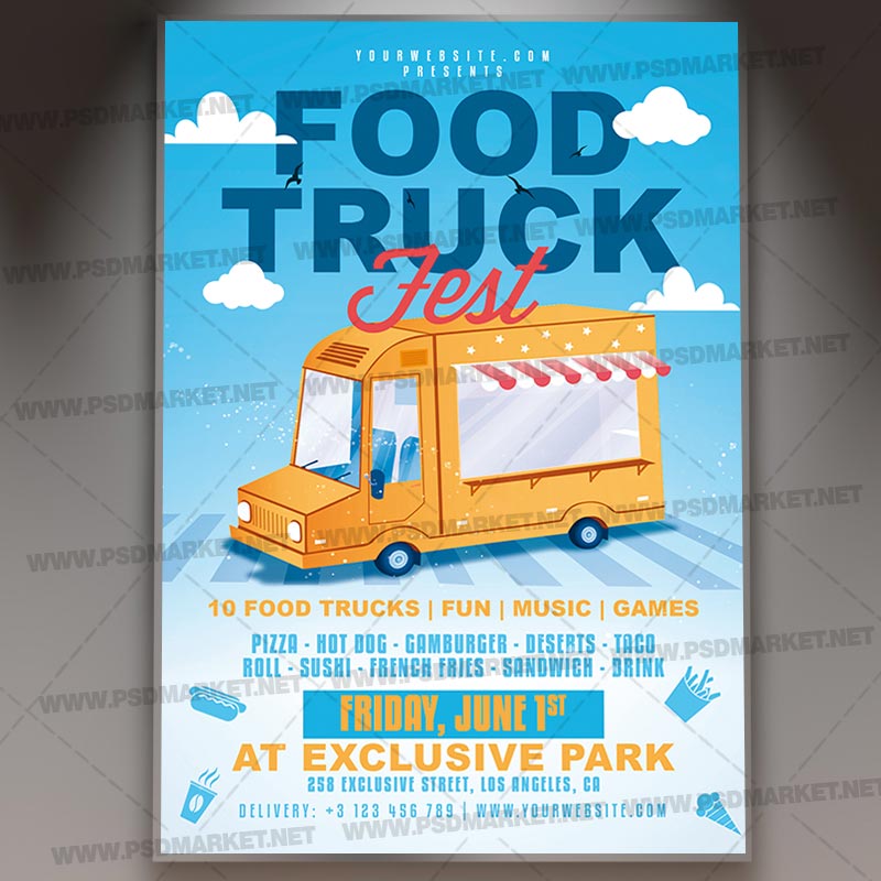 Food Truck Fest Card Printable Template Flyer PSD is a simply modern flyer design by PSDmarket Team to be used with Photoshop CS3 and higher. Save your time and use it for business or for your clients! This can be use for Food Truck Festival, Farmer Market Festival, Food Truck Festival, Farmers Market, Food Truck Day, Organic Market and others.