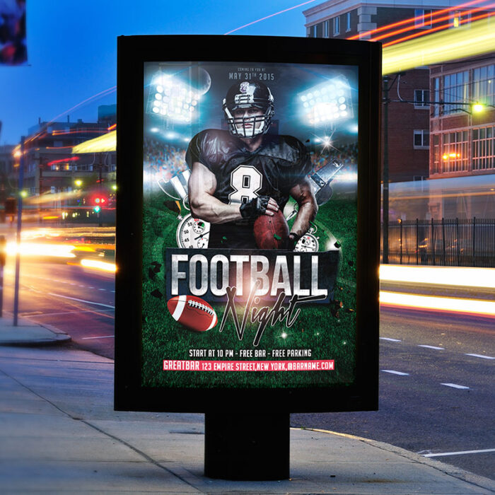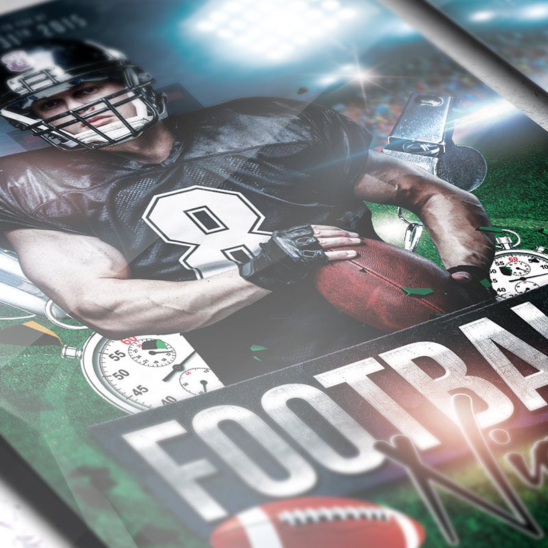 The Football Night is the exclusive Photoshop PSD flyer template designed by ExclusiveFlyer to promote your Football Party. This is a modern, stylish flyer and just be used for a Sport Party or Football Party. Dear customers! – you can also: Customize any flyers or Hire Us to create any unique product. Also, you can get unlimited access to all our templates. You can buy 1 month membership, 3 or 6 months membership or even 1 year membership plan and login on site, choose a design, click the button DOWNLOAD TEMPLATE and it’s yours. No hassle, no checkout! When you paid the template, you can find it in your personal account and of course you’ve got a message to your e-mail (maybe in spam) with link to download. Also, you can find all templates, which you buy, in your personal account! All of our flyers have a very good quality (300DPI). And it means that you just need to download one of them and make the necessary modifications such as replace the elements or choose the colors and start to invite your guests! You can order from us design of Banner Ad, Bi-Fold Brochure, Tri-Fold Brochure, Business Card, Logo, One-Sided Flyer, Two-sided Flyer or Postcard. All you need is to checkout and write us all information on our e-mail or skype. (order now). There are a lot of free flyer templates, free business card templates on our site! Also there are a lot of categories of flyers such as club flyers, seasonal flyers, sport flyers and also business flyers. You have a great choise on our site, so good luck! Don’t forget to follow our Facebook community, our page on Twitter, on Pinterest and on Tumblr and leave comments, cause we work for you! PSD is set up in 1275×1875 dimension (4″×6″ with 0,25″ bleed). The PSD file is very well organised, with color coded groups and layers named appropriately. Remember, all stock images of models and other people used only for demonstration all charms of the flyer and don’t included in the download!