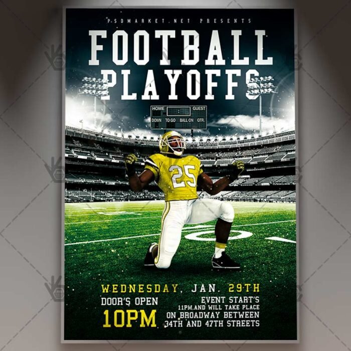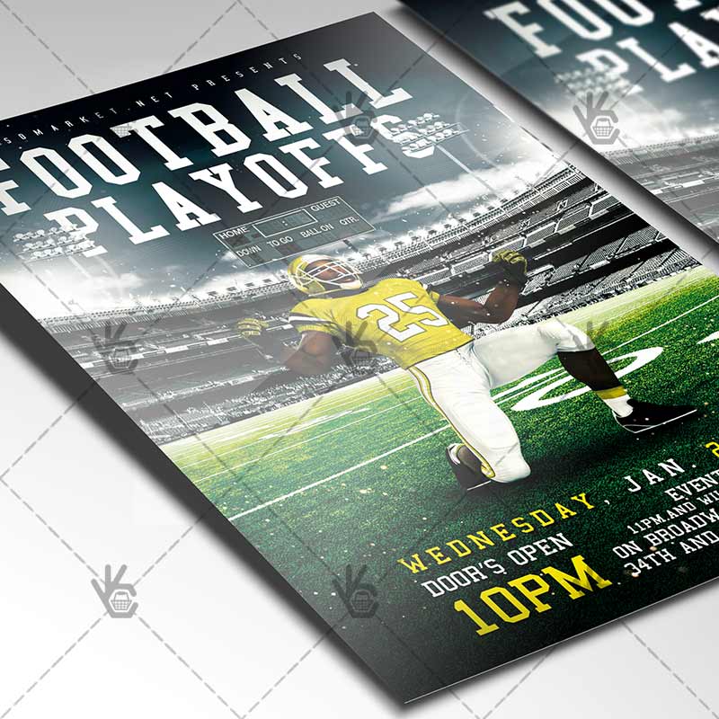 Football Playoffs is a simply modern flyer design by PSDmarket Team to be used with Photoshop CS3 and higher. Save your time and use it for business or for your clients! This can be use for Football Camp, Football Fest, American Super Ball, College Football, FootBall Game or FootBall Event and others.