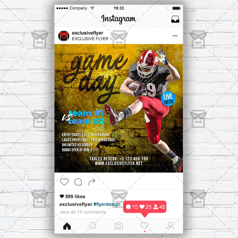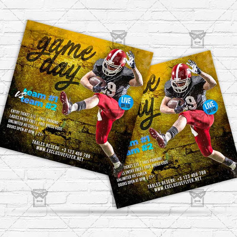 Game Day Template an exclusive PSD flyer template for Adobe Photoshop designed by our best graphic designers to facilitate your task in promoting your business. With our readymade Club flyer in psd format you can invite you customers and guest to your event or to the best Football Madness, Football Mayhem, Football Night, Football Match, Football Event in their lives.
