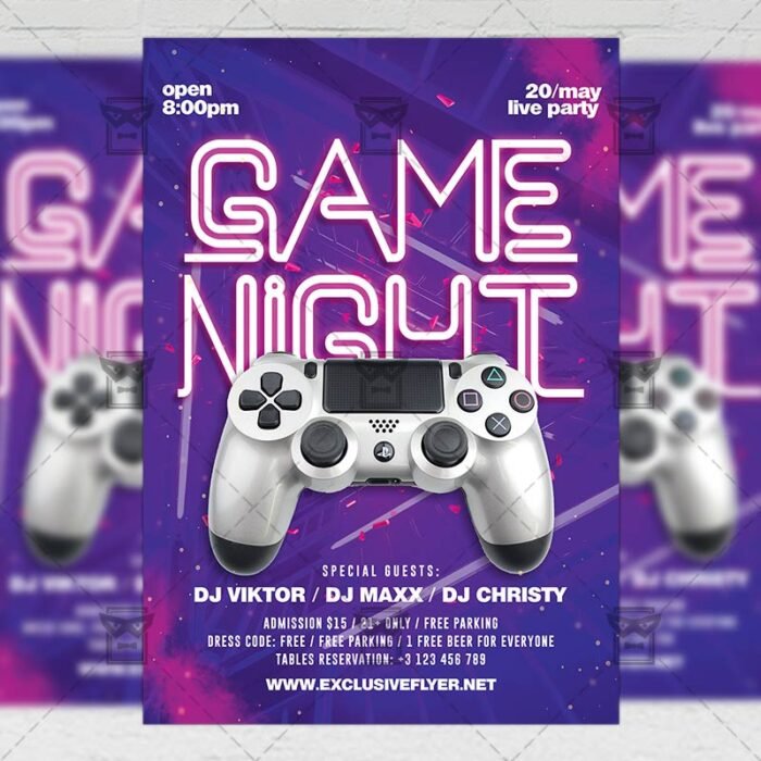 Game Night A5 Flyer Template for Adobe Photoshop