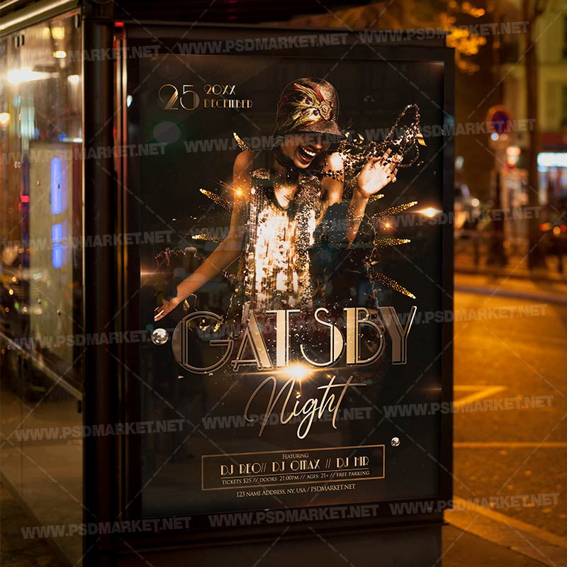 Gatsby Night Event Flyer is a simply modern flyer design by PSDmarket Team to be used with Photoshop CS3 and higher. Save your time and use it for business or for your clients! This can be use for Gatsby Night Event, Gatsby Party Event, Gatsby Party, Gatsby Night, Gatsby Fest, Gatsby Dance Party, Retro Gatsby Party, Gatsby Nights, Gatsby Party Night and others.