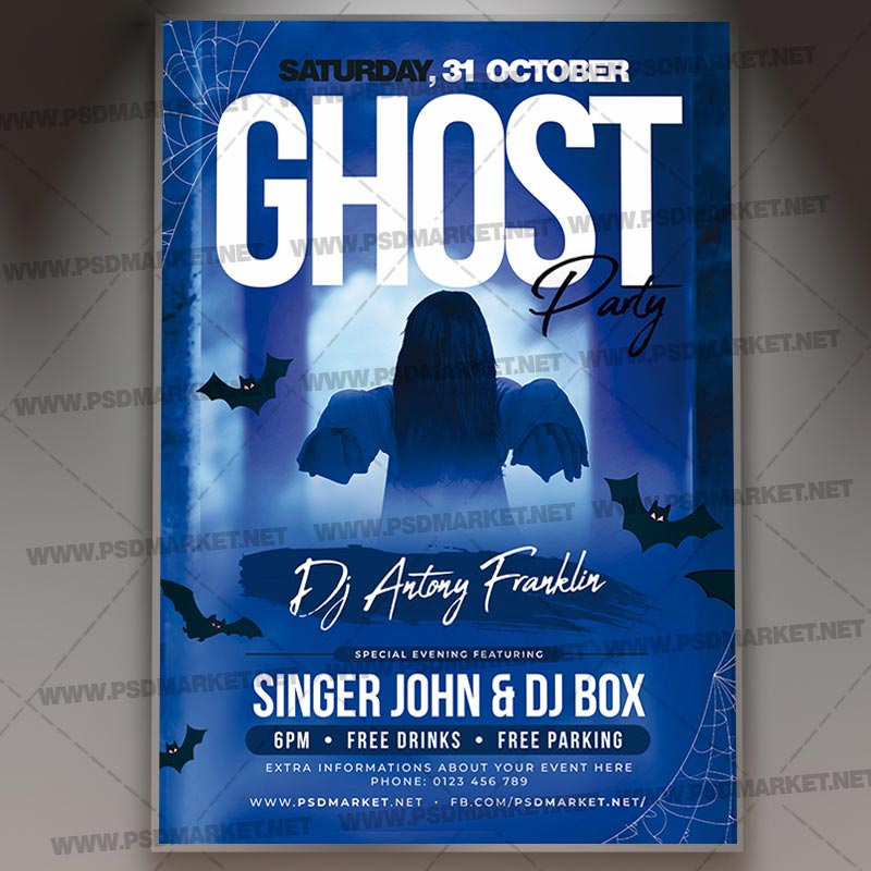 Ghost Party Template Flyer PSD is a simply modern flyer design by PSDmarket Team to be used with Photoshop CS3 and higher. Save your time and use it for business or for your clients! This can be use for Ghost Party, Happy Hour Halloween, Horror Night, Horror Halloween, Halloween Offer, Halloween Costume Event, Halloween Event Party, Halloween Event Night, Scary Event Night, Scary Halloween Night, Scary Halloween Party, Halloween Sale Event, Halloween Party Event, Scary Halloween, Scary Event, Halloween Costume Party, Halloween Sale, Hallo Ween, Blood Night, Horror Party, Halloween Night Event, Halloween Event, Halloween, Halloween Night Party, Scary Night, Trick or Treat, Halloween Night, Happy Halloween, Halloween Party, Halloween Costume Contest, Costume Party, Halloween Night, Kids Halloween Show and others.