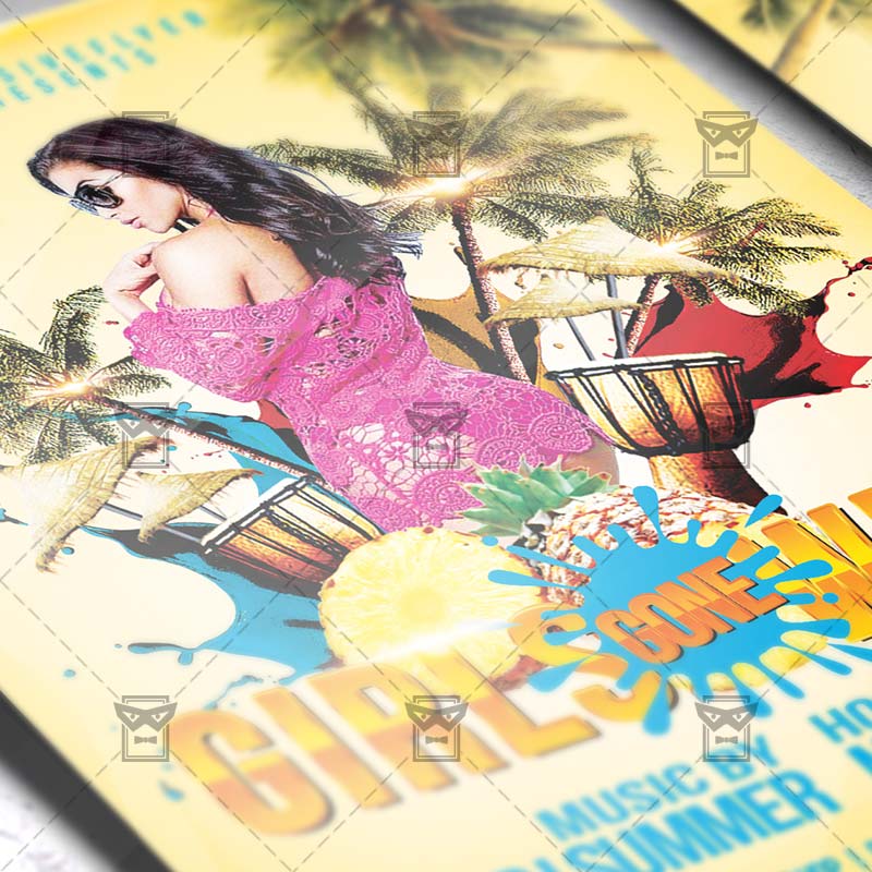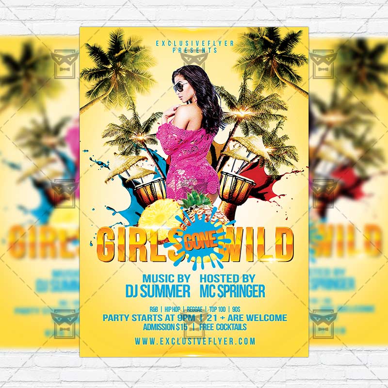 The Girls Gone Wild is the exclusive Photoshop PSD flyer template designed by ExclusiveFlyer to promote your Girls Gone Wild Party. This is a modern, stylish flyer and just be used for a Girls Party, Summer Night or Cocktails Night etc. Dear customers! – you can also: Customize any flyers or Hire Us to create any unique product. Also, you can get unlimited access to all our templates. You can buy 1 month membership, 3 or 6 months membership or even 1 year membership plan and login on site, choose a design, click the button DOWNLOAD TEMPLATE and it’s yours. No hassle, no checkout! When you paid the template, you can find it in your personal account and of course you’ve got a message to your e-mail (maybe in spam) with link to download. Also, you can find all templates, which you buy, in your personal account! All of our flyers have a very good quality (300DPI). And it means that you just need to download one of them and make the necessary modifications such as replace the elements or choose the colors and start to invite your guests! You can order from us design of Banner Ad, Bi-Fold Brochure, Tri-Fold Brochure, Business Card, Logo, One-Sided Flyer, Two-sided Flyer or Postcard. All you need is to checkout and write us all information on our e-mail or skype. (order now). There are a lot of free flyer templates, free business card templates on our site! Also there are a lot of categories of flyers such as club flyers, seasonal flyers, sport flyers and also business flyers. You have a great choise on our site, so good luck! Don’t forget to follow our Facebook community, our page on Twitter, on Pinterest and on Tumblr and leave comments, cause we work for you! PSD is set up in 1275×1875 dimension (4″×6″ with 0,25″ bleed). The PSD file is very well organised, with color coded groups and layers named appropriately. Remember, all stock images of models and other people used only for demonstration all charms of the flyer and don’t included in the download!