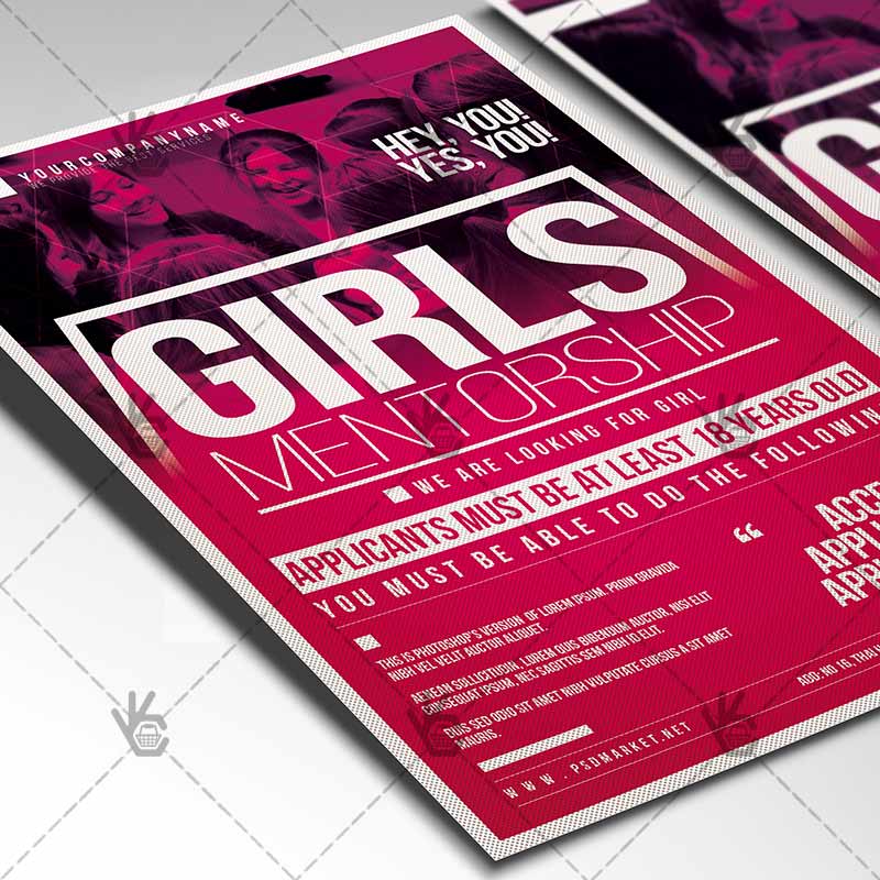 Girls Mentorship Flyer is a simply modern flyer design by PSDmarket Team to be used with Photoshop CS3 and higher. Save your time and use it for business or for your clients! This can be use for Girls Mentorship, Girls Mentor, Volunteer Mentor, Mentoring Teen Girls, Mentors, Mentor program or Mentors Needed or Mentor Event and others.