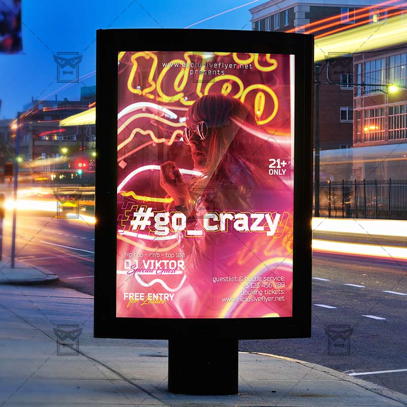 Go Crazy Night Flyer PSD Template for Adobe Photoshop