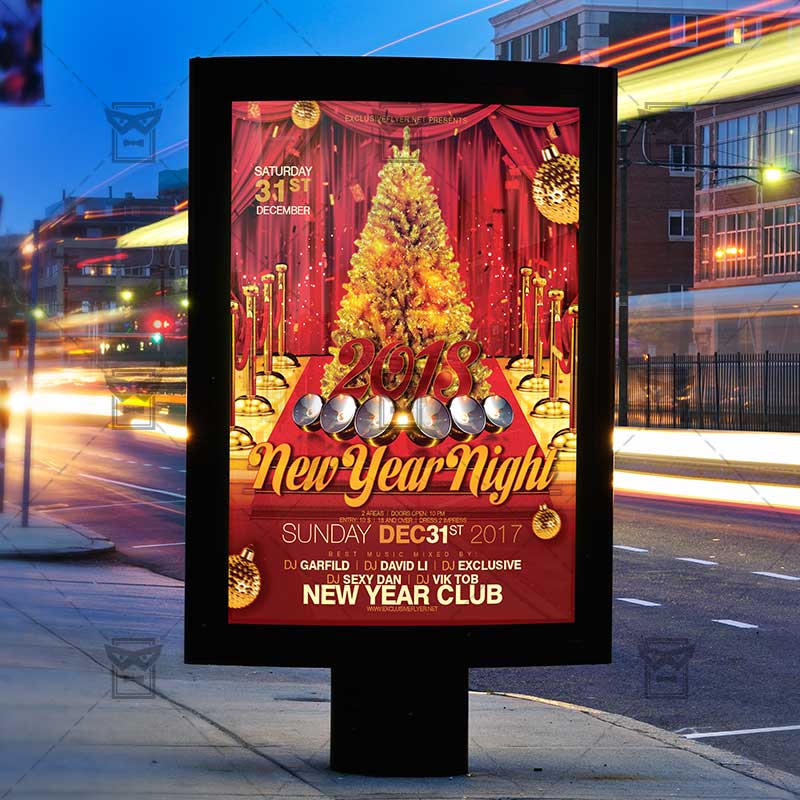 Gold New Year Night is an exclusive PSD flyer template for Adobe Photoshop designed by our best graphic designers to facilitate your task in promoting your business. With our readymade New Year Eve Party flyer in psd format you can invite you customers and guest to your event or to the best NYE Night or New Year Eve Party in their lives.