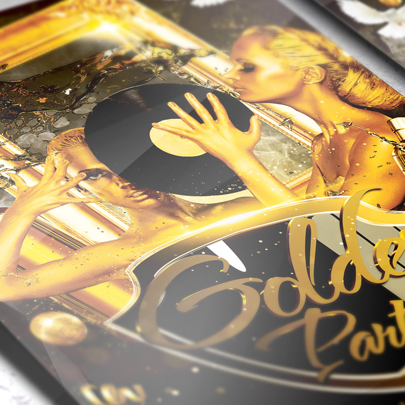 The Golden Party is the exclusive Photoshop PSD flyer template designed by ExclusiveFlyer to promote your Golden Party. This is a modern, stylish flyer and just be used for a Luxury Party, VIP Night or New Year Party etc. Dear customers! – you can also: Customize any flyers or Hire Us to create any unique product. Also, you can get unlimited access to all our templates. You can buy 1 month membership, 3 or 6 months membership or even 1 year membership plan and login on site, choose a design, click the button DOWNLOAD TEMPLATE and it’s yours. No hassle, no checkout! When you paid the template, you can find it in your personal account and of course you’ve got a message to your e-mail (maybe in spam) with link to download. Also, you can find all templates, which you buy, in your personal account! All of our flyers have a very good quality (300DPI). And it means that you just need to download one of them and make the necessary modifications such as replace the elements or choose the colors and start to invite your guests! You can order from us design of Banner Ad, Bi-Fold Brochure, Tri-Fold Brochure, Business Card, Logo, One-Sided Flyer, Two-sided Flyer or Postcard. All you need is to checkout and write us all information on our e-mail or skype. (order now). There are a lot of free flyer templates, free business card templates on our site! Also there are a lot of categories of flyers such as club flyers, seasonal flyers, sport flyers and also business flyers. You have a great choise on our site, so good luck! Don’t forget to follow our Facebook community, our page on Twitter, on Pinterest and on Tumblr and leave comments, cause we work for you! PSD is set up in 1275×1875 dimension (4” x 6” with 0,25” bleed). The PSD file is very well organised, with color coded groups and layers named appropriately. Remember, all stock images of models and other people used only for demonstration all charms of the flyer and don’t included in the download!