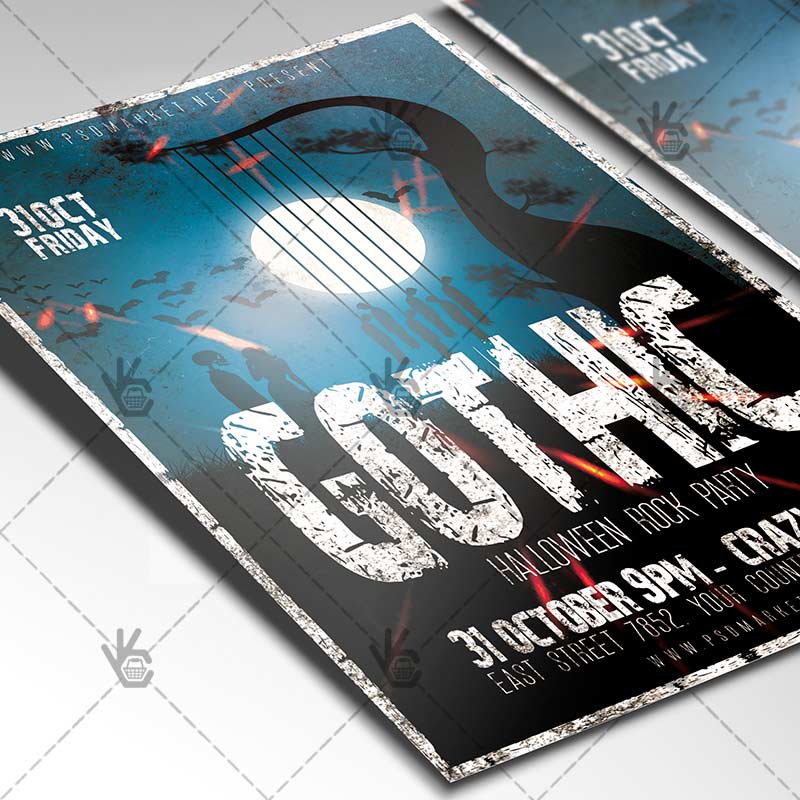 Gothic Halloween Rock Party Flyer is a simply modern flyer design by PSDmarket Team to be used with Photoshop CS3 and higher. Save your time and use it for business or for your clients! This can be use for Gothic Halloween Rock Party, Halloween Rock Party, Halloween Night, Halloween Saturday, Halloween Kids, Happy Halloween, Halloween, Disney Halloween, Halloween Day, Halloween Fest, Halloween Carnival, Halloween Night, Happy Halloween, Halloween Celebration or Halloween Festival and others.