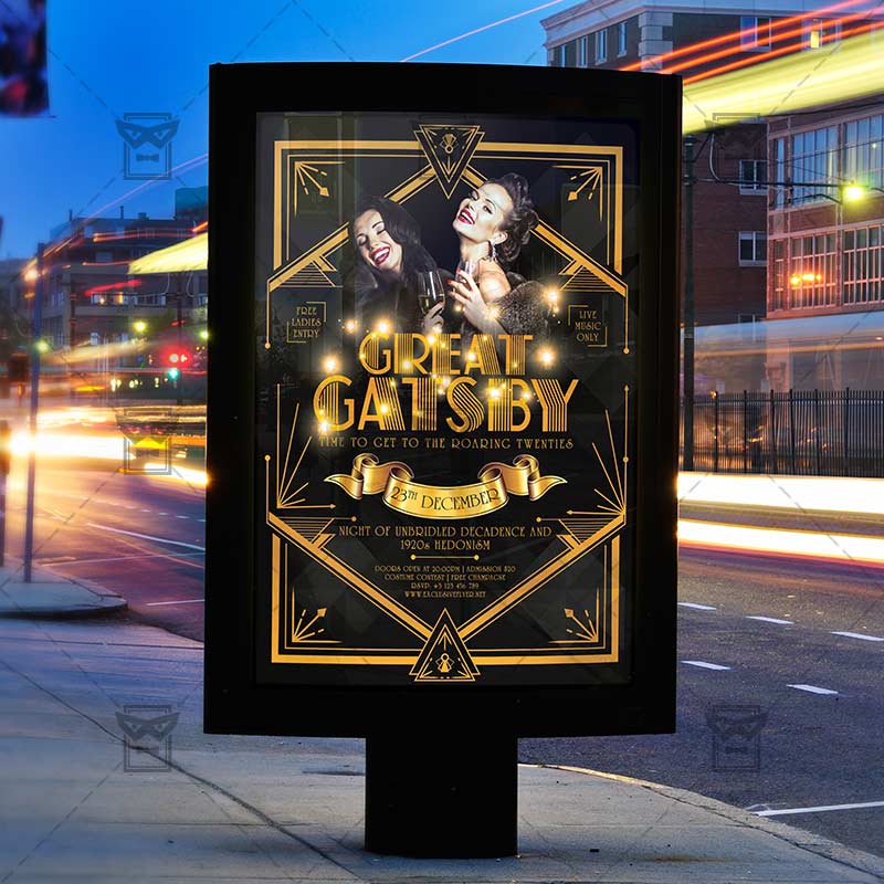 Great Gatsby Night is an exclusive PSD flyer template for Adobe Photoshop designed by our best graphic designers to facilitate your task in promoting your business. With our readymade Great Gatsby Retro flyer in psd format you can invite you customers and guest to your event or to the best Great Gatsby Night or Retro 1920’s Party in their lives.