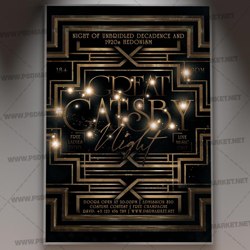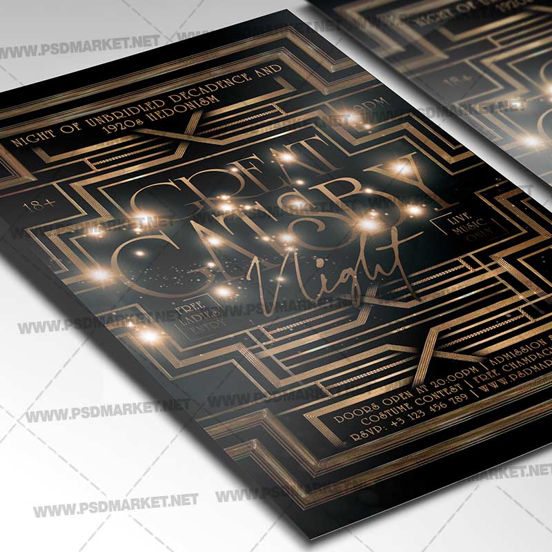 Great Gatsby Night Flyer is a simply modern flyer design by PSDmarket Team to be used with Photoshop CS3 and higher. Save your time and use it for business or for your clients! This can be use for Great Gatsby Night, Gatsby Night Event, Gatsby Party Event, Gatsby Party, Gatsby Night, Gatsby Fest, Gatsby Dance Party, Retro Gatsby Party, Gatsby Nights, Gatsby Party Night and others.