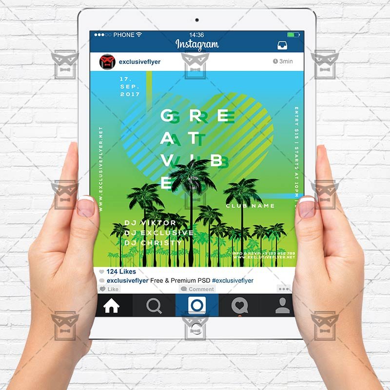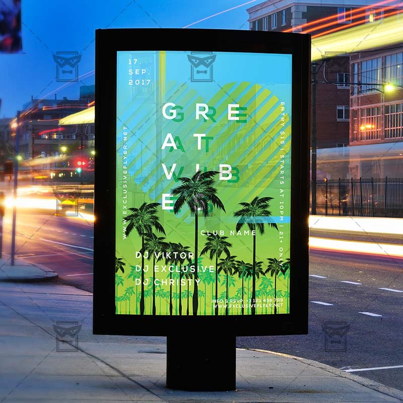 The Great Vibes is the exclusive Photoshop PSD flyer template designed by ExclusiveFlyer to promote your Great Vibes Night. This is a modern, stylish flyer and just be used for Dj Night, Minimal Party, Electro Night, Urban Night etc.
