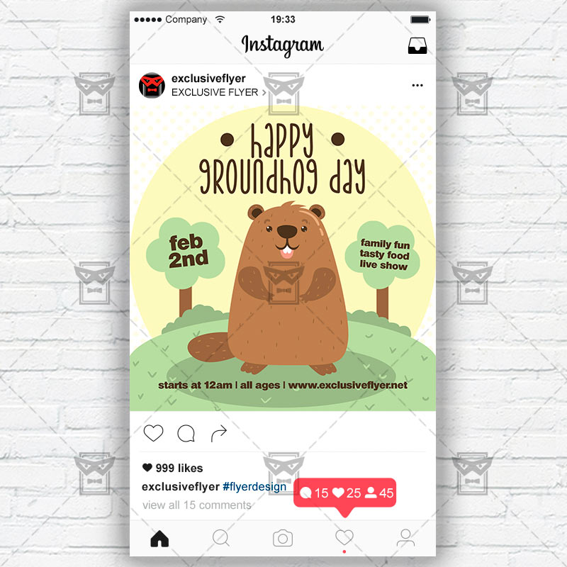 Groundhog Day Celebration Flyer Template an exclusive PSD flyer template for Adobe Photoshop designed by our best graphic designers to facilitate your task in promoting your business. With our readymade Club flyer in psd format you can invite you customers and guest to your event or to the best Groundhog Show, Groundhog Day, Groundhog Live Eventm Groundhog Day Party in their lives.