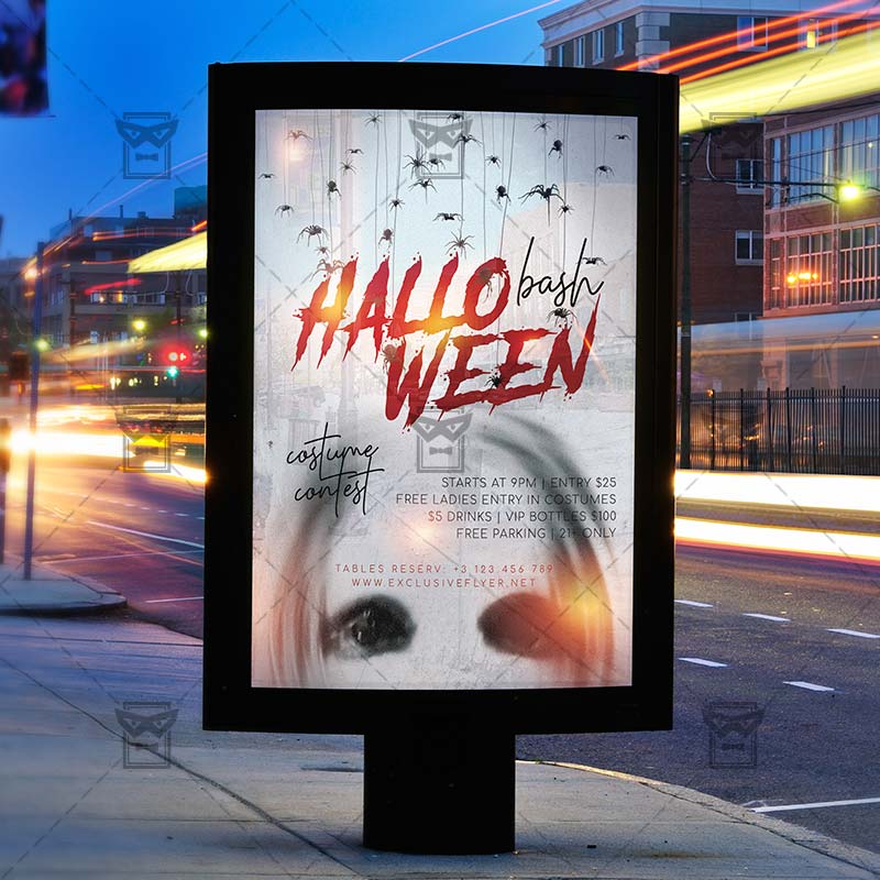 Halloween Bash Template an exclusive PSD flyer template for Adobe Photoshop designed by our best graphic designers to facilitate your task in promoting your business. With our readymade Club flyer in psd format you can invite you customers and guest to your event or to the best Halloween Party, Halloween Festival, Halloween Superheroes Contest or Superheroes Party in their lives.