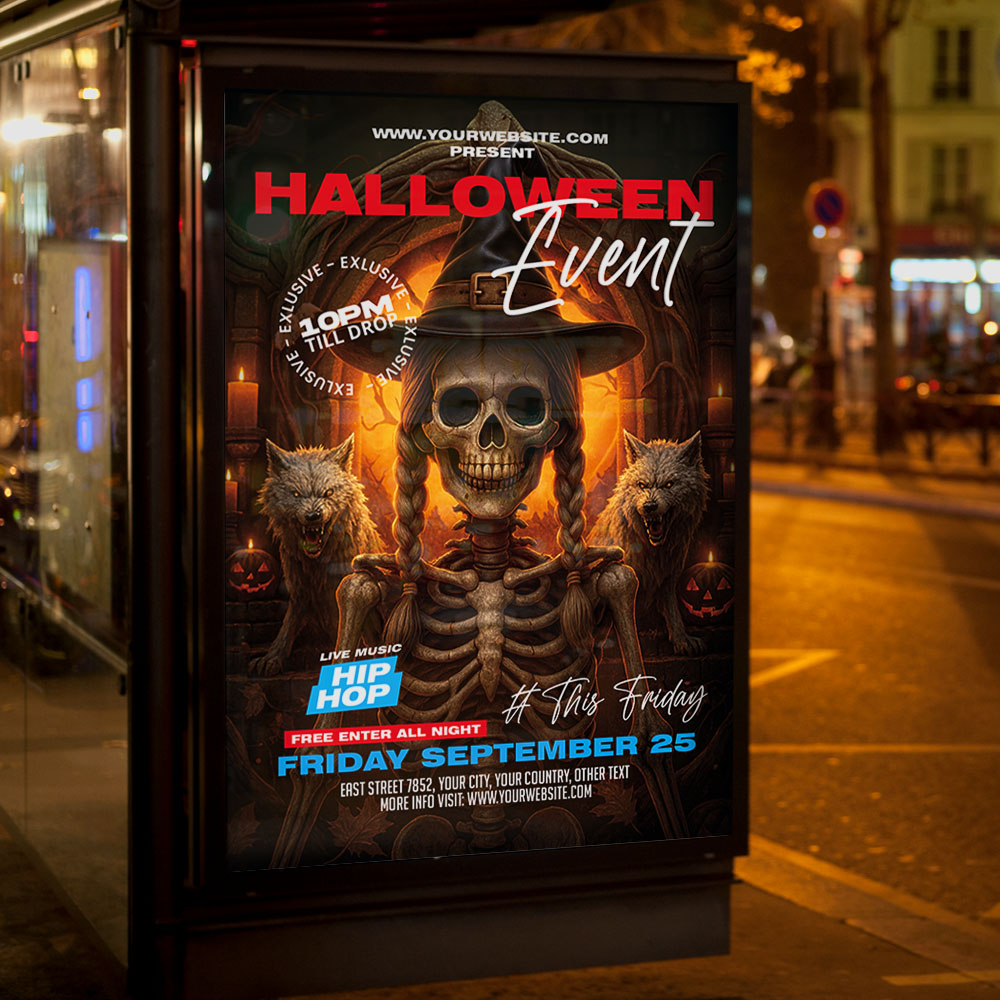 Halloween Club Crazy Flyer TemplatePrepare for a night where the bass drops and the madness begins! Our high-voltage **Halloween Club Crazy Flyer Template** is the ultimate design weapon for promoting your wildest, most unhinged Halloween night at the club, a chaotic DJ set featuring terrifying visuals, or any high-energy nightlife event that pushes the limits of costume and dance. If you’re looking to create an irresistible invitation that screams “**Rage till dawn (or death)**,” “**The craziest club night this Halloween**,” and “**Prepare for a total costume blackout**,” this flyer template is engineered to draw a massive and enthusiastic crowd ready for intense music and mayhem. Expect to see striking visuals, often incorporating energetic elements like neon-lit horror motifs, distorted dancer silhouettes, chaotic graphic overlays, and a bold, aggressive typography that perfectly captures the raw, frenetic, and exhilarating spirit of a **Crazy Halloween Club Night**. This template is all about setting an electrifying, high-octane mood, making your club the ultimate destination for an unforgettable experience in pure, terrifying party power. The **Halloween Club Crazy Flyer Template** offers a highly adaptable and professional layout, ensuring you can clearly communicate all the essential details of your event while perfectly maintaining its horrifyingly energetic atmosphere. You can easily customize the text fields to include the specific date and time of your club night, the electrifying venue location, any special entry requirements (e.g., ticket purchase details, mandatory costumes), and information about featured entertainment (e.g., a **DJ** spinning electro-house horror mixes, a terrifying light show), details on the **outrageous costume contest** (prizes for the most insane!), or enticing food and drink specials (e.g., “psycho shots,” “zombie fuel”), all presented in a clear and appealing way. Add an enticing description of what attendees can expect, perhaps highlighting opportunities for a special **VIP “Insanity Cage” lounge**, a themed photo booth with wacky props, or simply dancing until exhaustion in a high-energy, chaotic atmosphere. And of course, include clear contact information or prominent social media handles for further engagement and ticket sales. Many templates also provide exciting options to incorporate additional dynamic graphics like light trails, digital glitches, or aggressive visual overlays, or to adjust the impactful color palette (often electric greens, shocking pinks, and sinister blacks) to perfectly match your brand’s aesthetic or the event’s specific vibe. This lets you create a truly unique and memorable promotional piece that looks as intense and exciting as your club night feels. Engineered for maximum reach, the **Halloween Club Crazy Flyer Template** is designed to be both print-ready for stunning physical distribution and seamlessly optimized for digital sharing. This ensures your exciting invitation reaches a wide and enthusiastic audience. Create eye-catching physical flyers to distribute at other clubs, universities, horror conventions, or through nightlife event groups. Effortlessly share the flyer digitally through various social media channels with engaging captions that highlight the night’s unhinged energy, email announcements that build anticipation, and online event listings that attract horror fans, club-goers, and anyone looking for the wildest party of the year. This dual functionality helps to maximize visibility and create significant buzz around your Halloween Club Crazy event. By utilizing this distinctive and attention-grabbing flyer template, you’re not just announcing a party; you’re creating an invitation that broadcasts pure, thrilling fun and promises an experience filled with loud music, intense visuals, and unforgettable memories, making your “**Halloween Club Crazy**” the ultimate destination for an epic gathering. Grab this template today and get ready to own the night! — Features of the Halloween Club Crazy Flyer Template