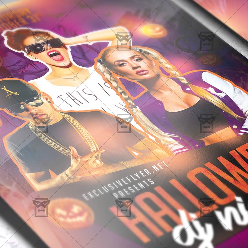 Halloween Dj Night is an exclusive PSD flyer template for Adobe Photoshop designed by our best graphic designers to facilitate your task in promoting your business. With our readymade Halloween flyer in psd format you can invite you customers and guest to your event or to the best Scary Night, Horror Party, Monster Night or Halloween Party in their lives.