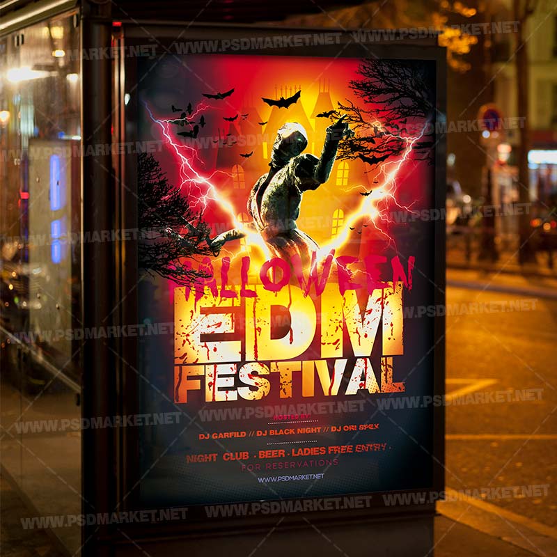 Halloween EDM Festival Flyer is a simply modern flyer design by PSDmarket Team to be used with Photoshop CS3 and higher. Save your time and use it for business or for your clients! This can be use for Halloween EDM Festival, Halloween EDM, EDM Party, EDM Night, Dark Night, Gothic Halloween Rock Party, Halloween Rock Party, Halloween Night, Halloween Saturday, Halloween Kids, Happy Halloween, Halloween, Disney Halloween, Halloween Day, Halloween Fest, Halloween Carnival, Halloween Night, Happy Halloween, Halloween Celebration or Halloween Festival and others.
