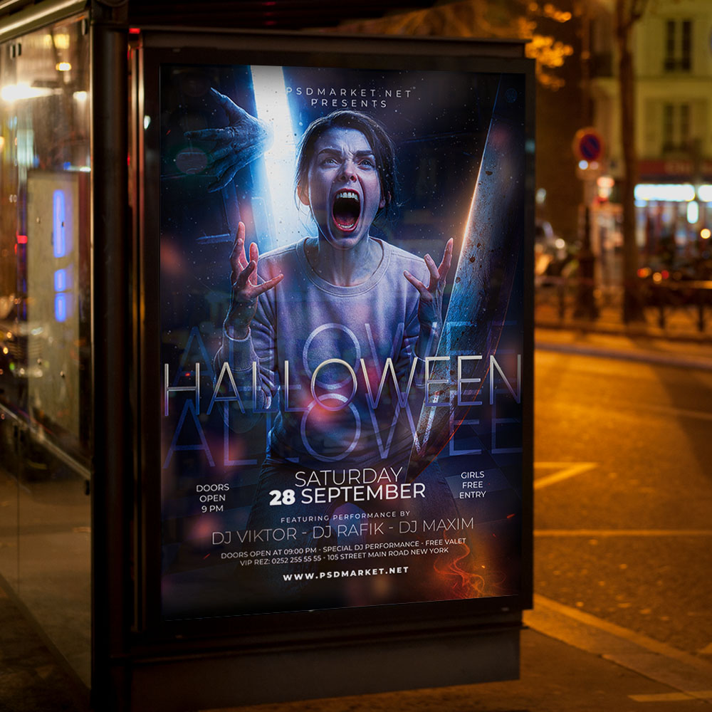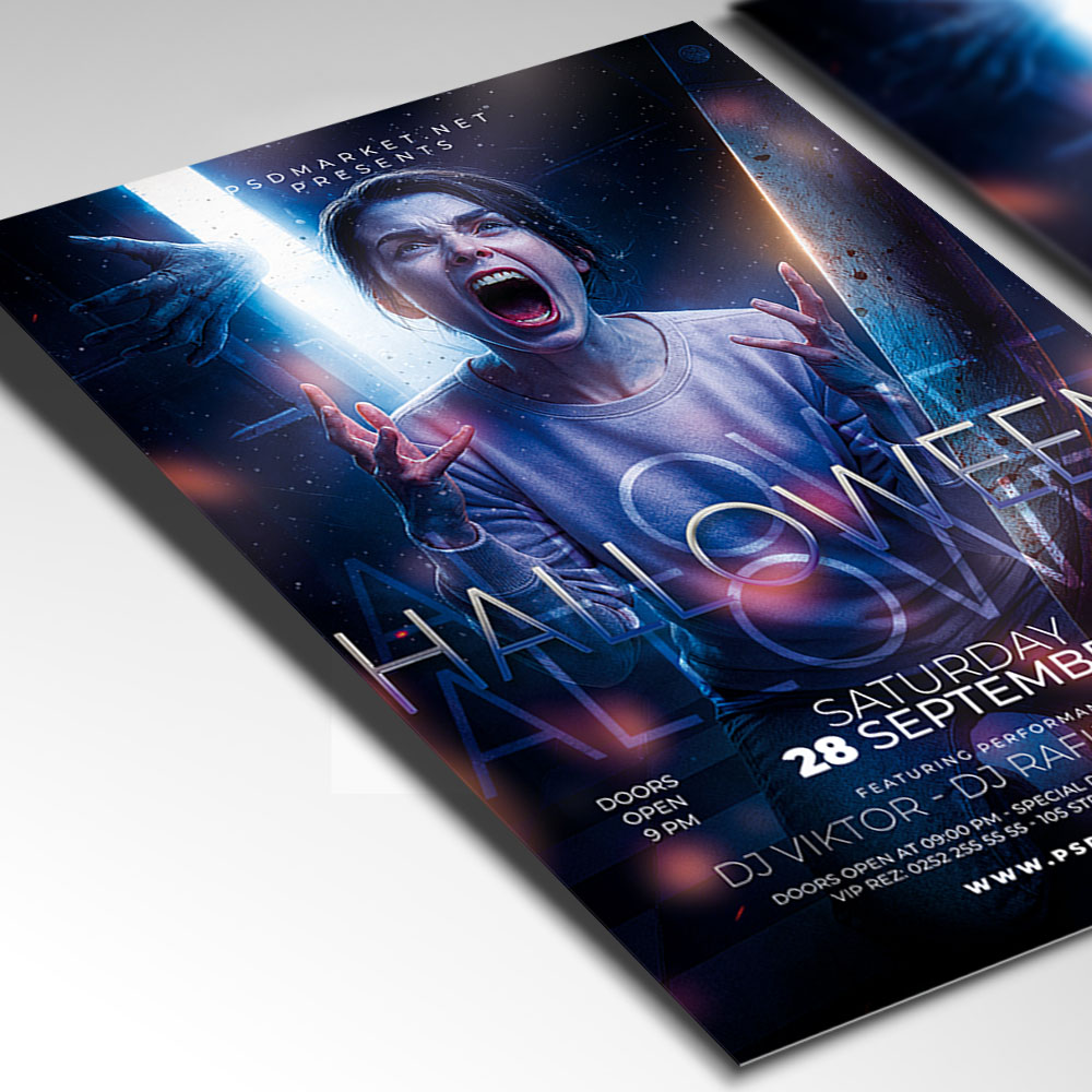 Halloween Event Party Flyer TemplatePrepare for a night of epic terror and fun with our ultimate **Halloween Event Party Flyer Template**! This incredibly spooky and festive design is the perfect weapon for promoting your club’s monster mash, a massive costume ball, a haunted house fundraiser, or any grand gathering celebrating the darkest night of the year. If you’re looking to create an irresistible invitation that screams “**costumes and cocktails**,” “**dance with the dead**,” and “**the biggest scare of the season**,” this flyer template is engineered to draw a huge, enthusiastic crowd of party-goers and thrill-seekers. Expect to see striking visuals, often incorporating energetic elements like menacing jack-o’-lanterns, sinister graveyards, fog-shrouded silhouettes, and a bold, unsettling typography that perfectly captures the terrifying and exhilarating spirit of a major **Halloween party**. This template is all about setting a chilling, yet high-energy mood, making your “**Halloween Event Party**” the ultimate destination for an unforgettable experience. The **Halloween Event Party Flyer Template** offers a highly adaptable and professional layout, ensuring you can clearly communicate all the essential details of your frightening festivity while perfectly maintaining its horrifyingly fun atmosphere. You can easily customize the text fields to include the specific date and time of your party, the eerie venue location, any special entry requirements (e.g., ticket purchase details, age restrictions), and information about featured entertainment (e.g., a live DJ spinning spooky tunes, a performance), details on the **costume contest** (prizes and categories!), or enticing food and drink specials (e.g., “vampire punch,” “gourmet finger foods”), all presented in a clear and appealing way. Add an enticing description of what attendees can expect, perhaps highlighting opportunities for a special **VIP casket lounge**, a spooky photo booth, or simply mingling in a terrifyingly fun atmosphere. And of course, include clear contact information or prominent social media handles for further engagement and ticket sales. Many templates also provide exciting options to incorporate additional dynamic graphics like cobwebs, lightning effects, or ghostly overlays, or to adjust the impactful color palette (often deep oranges, sinister blacks, and electric purples) to perfectly match your brand’s aesthetic or the event’s specific horror theme. This lets you create a truly unique and memorable promotional piece that looks as chilling and exciting as your party feels. Engineered for maximum reach, the **Halloween Event Party Flyer Template** is designed to be both print-ready for stunning physical distribution and seamlessly optimized for digital sharing. This ensures your exciting invitation reaches a wide and enthusiastic audience. Create eye-catching physical flyers to distribute at clubs, bars, community centers, or through local event groups. Effortlessly share the flyer digitally through various social media channels with engaging captions that highlight the night’s eerie energy, email announcements that build anticipation, and online event listings that attract horror fans, party-goers, and anyone looking for a thrilling night. This dual functionality helps to maximize visibility and create significant buzz around your Halloween Event Party. By utilizing this distinctive and attention-grabbing flyer template, you’re not just announcing a party; you’re creating an invitation that broadcasts pure thrilling fun and promises an experience filled with great music, amazing costumes, and unforgettable scares, making your “**Halloween Event Party**” the ultimate destination for an epic gathering. Grab this template today and prepare for the monster bash! — Features of the Halloween Event Party Flyer Template