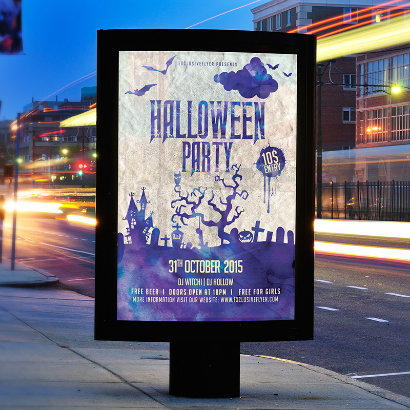 The Halloween Costume Night is the exclusive Photoshop PSD flyer template designed by ExclusiveFlyer to promote your Halloween Party. This is a modern sport flyer and just be used for a Costume Party or Halloween Night. Dear customers! – you can also: Customize any flyers or Hire Us to create any unique product. Also, you can get unlimited access to all our templates. You can buy 1 month membership, 3 or 6 months membership or even 1 year membership plan and login on site, choose a design, click the button DOWNLOAD TEMPLATE and it’s yours. No hassle, no checkout! When you paid the template, you can find it in your personal account and of course you’ve got a message to your e-mail (maybe in spam) with link to download. Also, you can find all templates, which you buy, in your personal account! All of our flyers have a very good quality (300DPI). And it means that you just need to download one of them and make the necessary modifications such as replace the elements or choose the colors and start to invite your guests! You can order from us design of Banner Ad, Bi-Fold Brochure, Tri-Fold Brochure, Business Card, Logo, One-Sided Flyer, Two-sided Flyer or Postcard. All you need is to checkout and write us all information on our e-mail or skype. (order now). There are a lot of free flyer templates, free business card templates on our site! Also there are a lot of categories of flyers such as club flyers, seasonal flyers, sport flyers and also business flyers. You have a great choise on our site, so good luck! Don’t forget to follow our Facebook community, our page on Twitter, on Pinterest and on Tumblr and leave comments, cause we work for you! PSD is set up in 1275×1875 dimension (4″×6″ with 0,25″ bleed). The PSD file is very well organised, with color coded groups and layers named appropriately. Remember, all stock images of models and other people used only for demonstration all charms of the flyer and don’t included in the download!